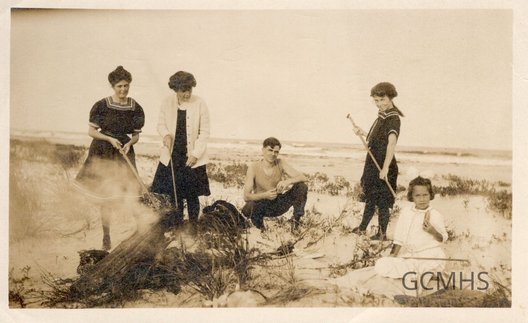 Includes one B&W photo, sepia tone, of four young people roasting hot dogs over a fire on the beach. verso reads: Friend Harriet Reeves ; Sarah D Dobbins ; Herbert Laws friend ; Emilie ; Anne ; taken in Ocean City NJ 1912-13 ca.Collection