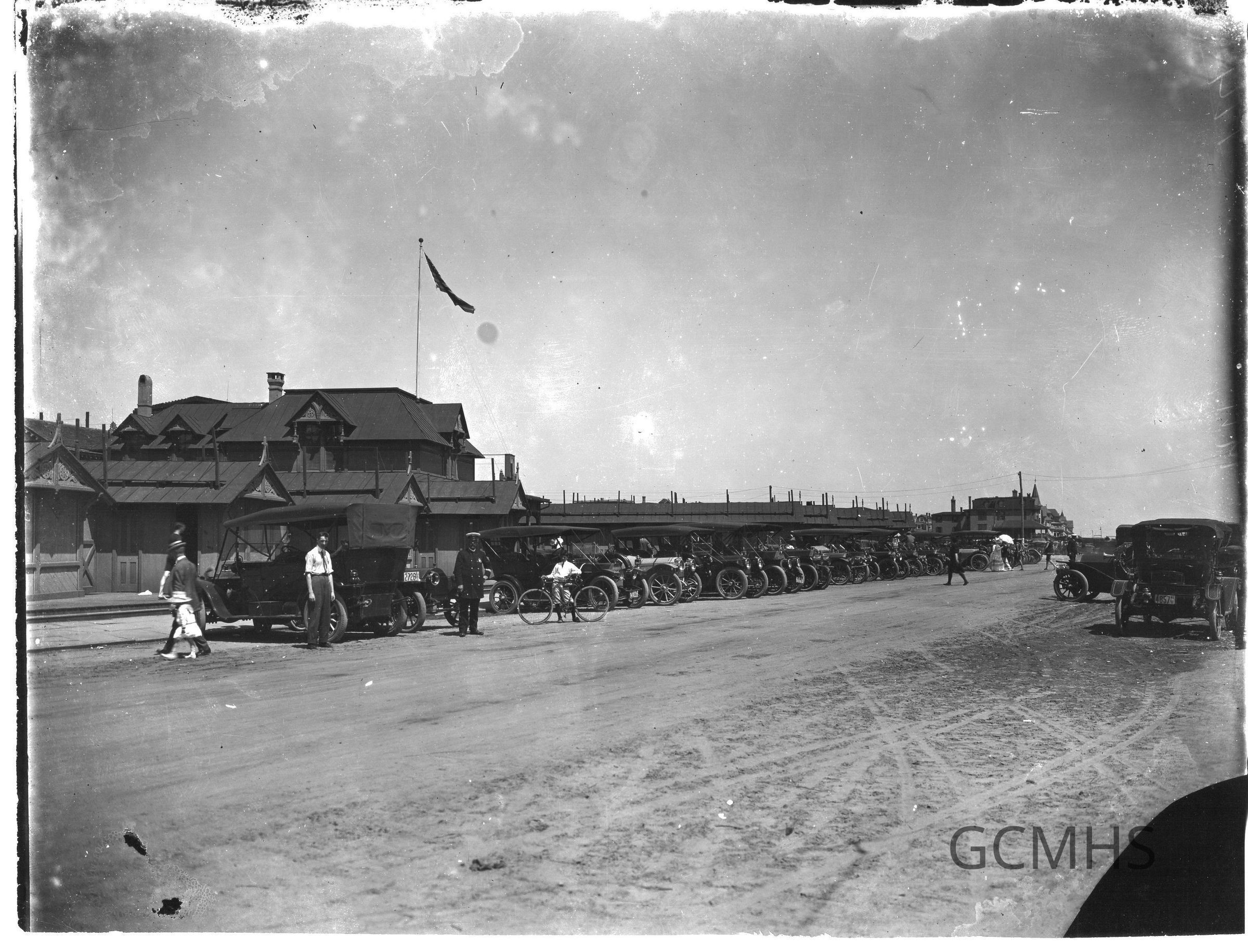 Includes two 8" x 10" copy prints of automobiles on the Cape May beach. One depicts a long row of parked cars, the other race cars driving on the beach.