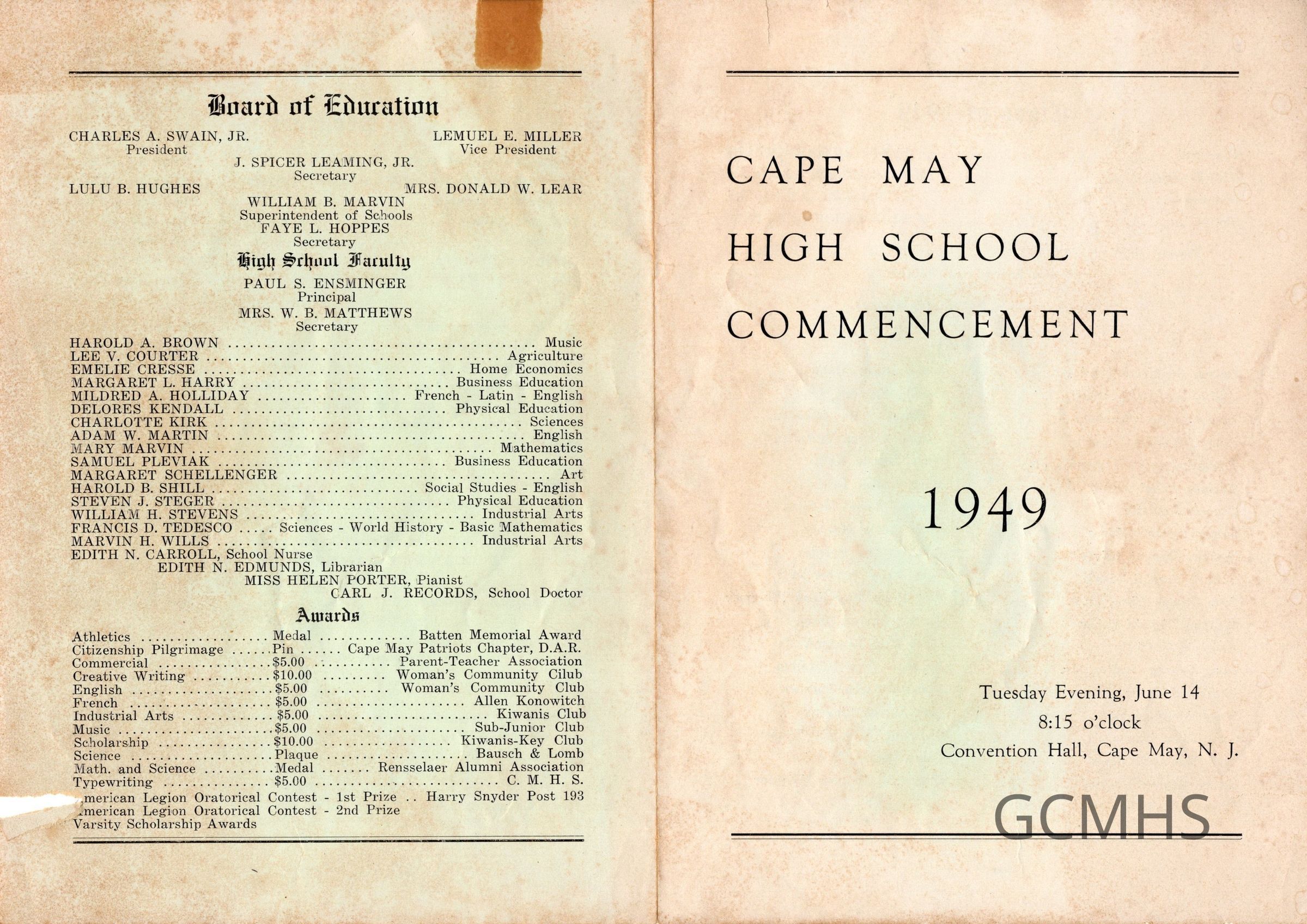 Cape May High School, Commencement, 1949