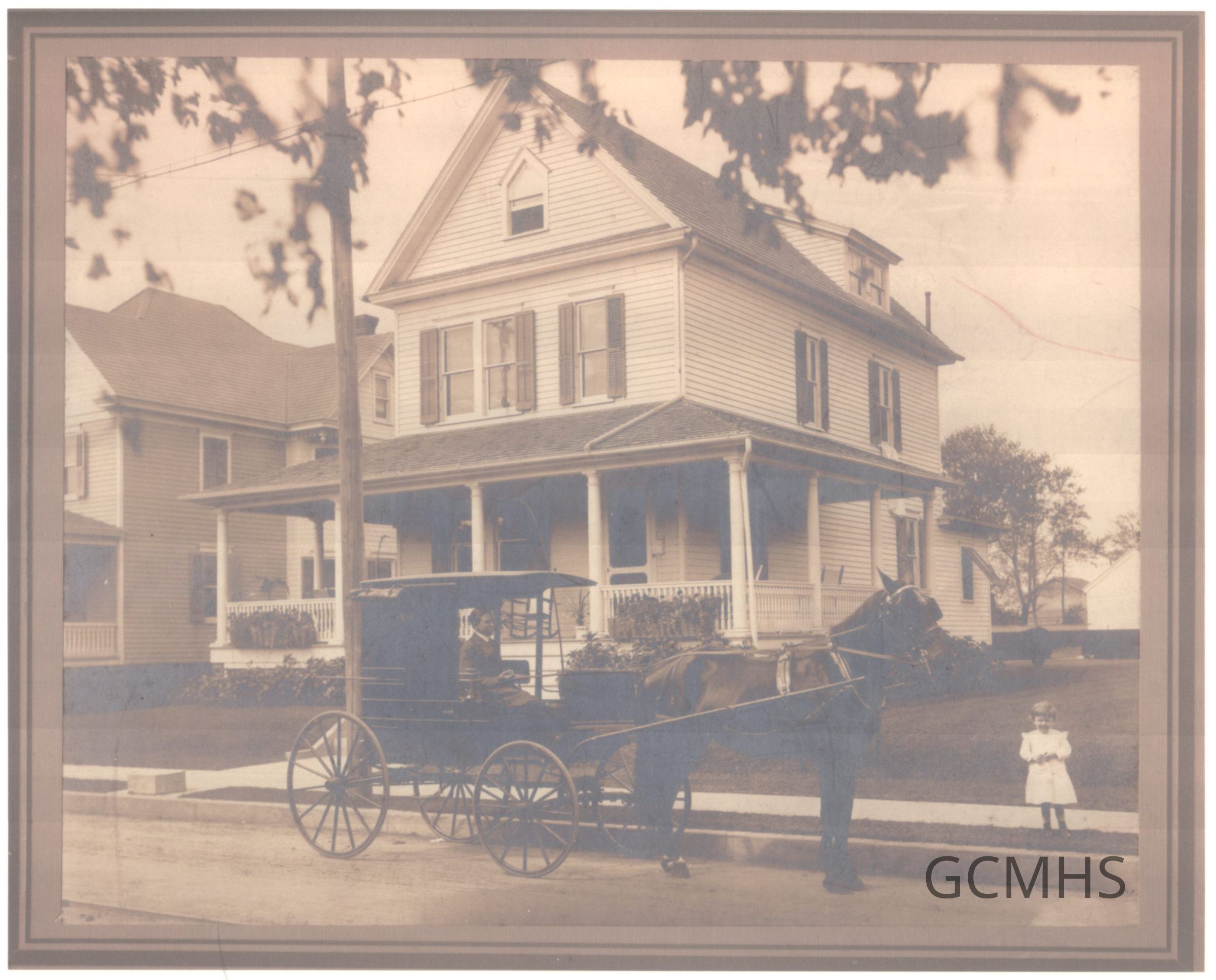 Includes print possibly made from computer printer of a framed photograph depicting the same horse and carriage, Cape May home, and small child as seen in MFC.PHO.2.Collection
