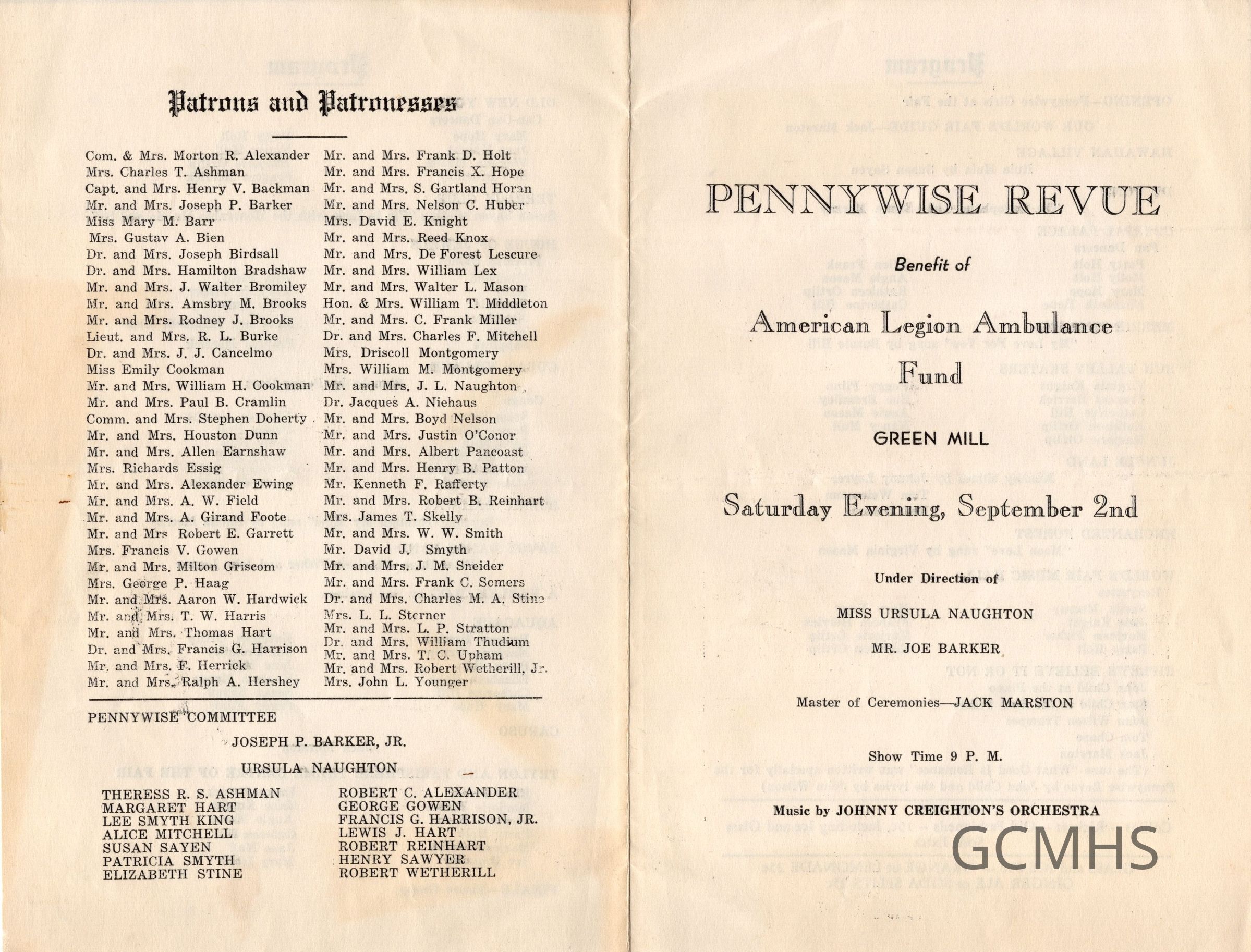 Includes a program for the benefit of the American Legion Ambulance.