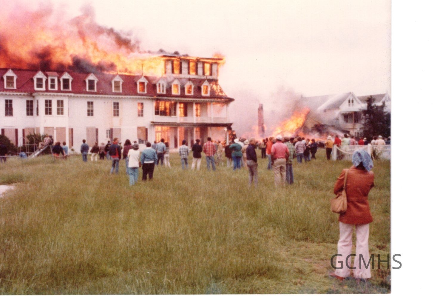 Includes three __ x__ color prints depicting the fire at the Windsor Hotel.
