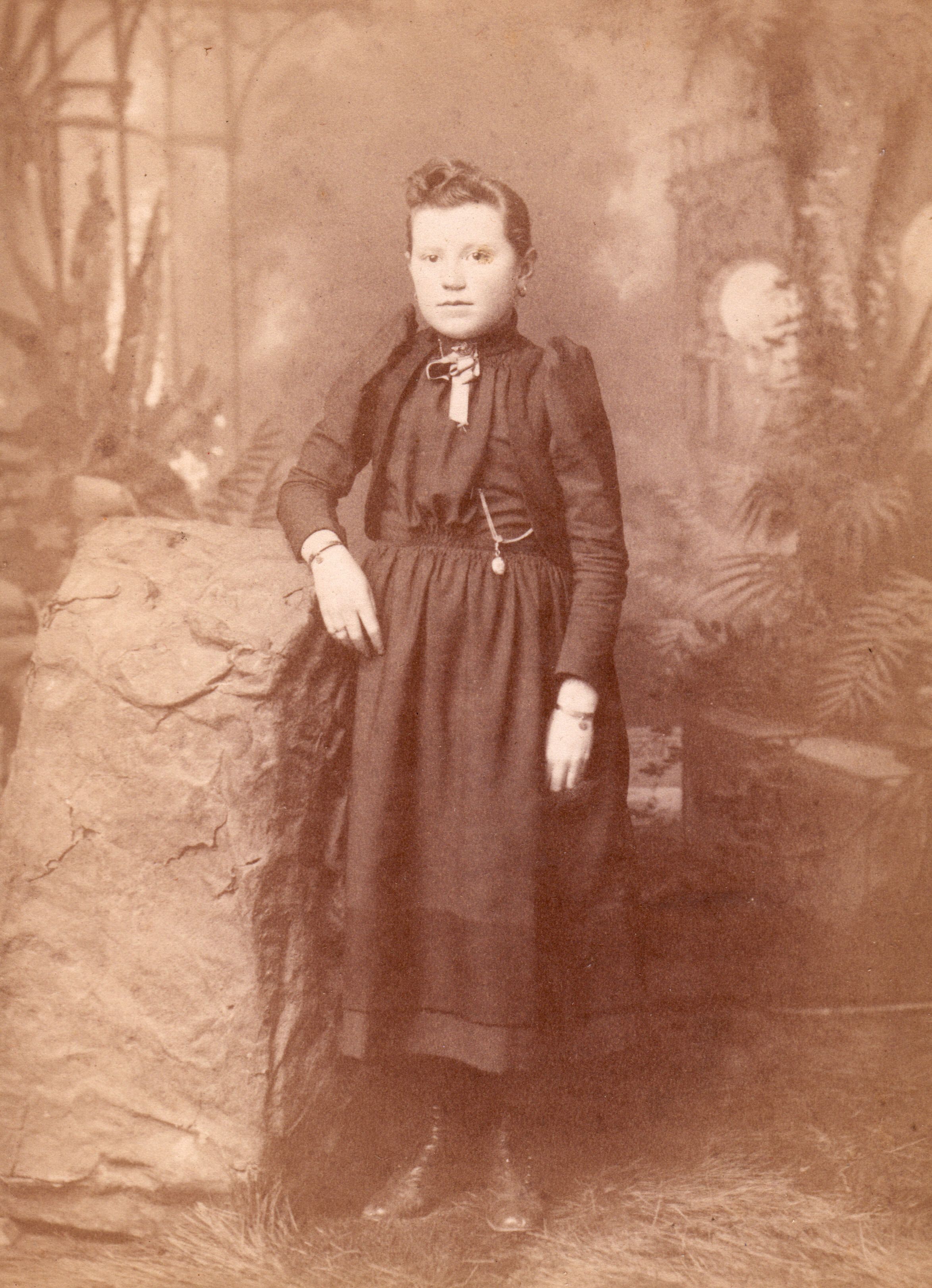 SOURCE CITATION: Rice-Fordyce Album 01, Photo 10 - Armeda Jane May (Rice) Brown [1881-1961]; circa 1885-1895, image by T. W. Rogers, Photo, Carmichaels, Pa.; item no. RICE-AN001-0001-0010, John Robert Rice Collection, Greene Connections Archives Project (www.GreeneConnections.com).