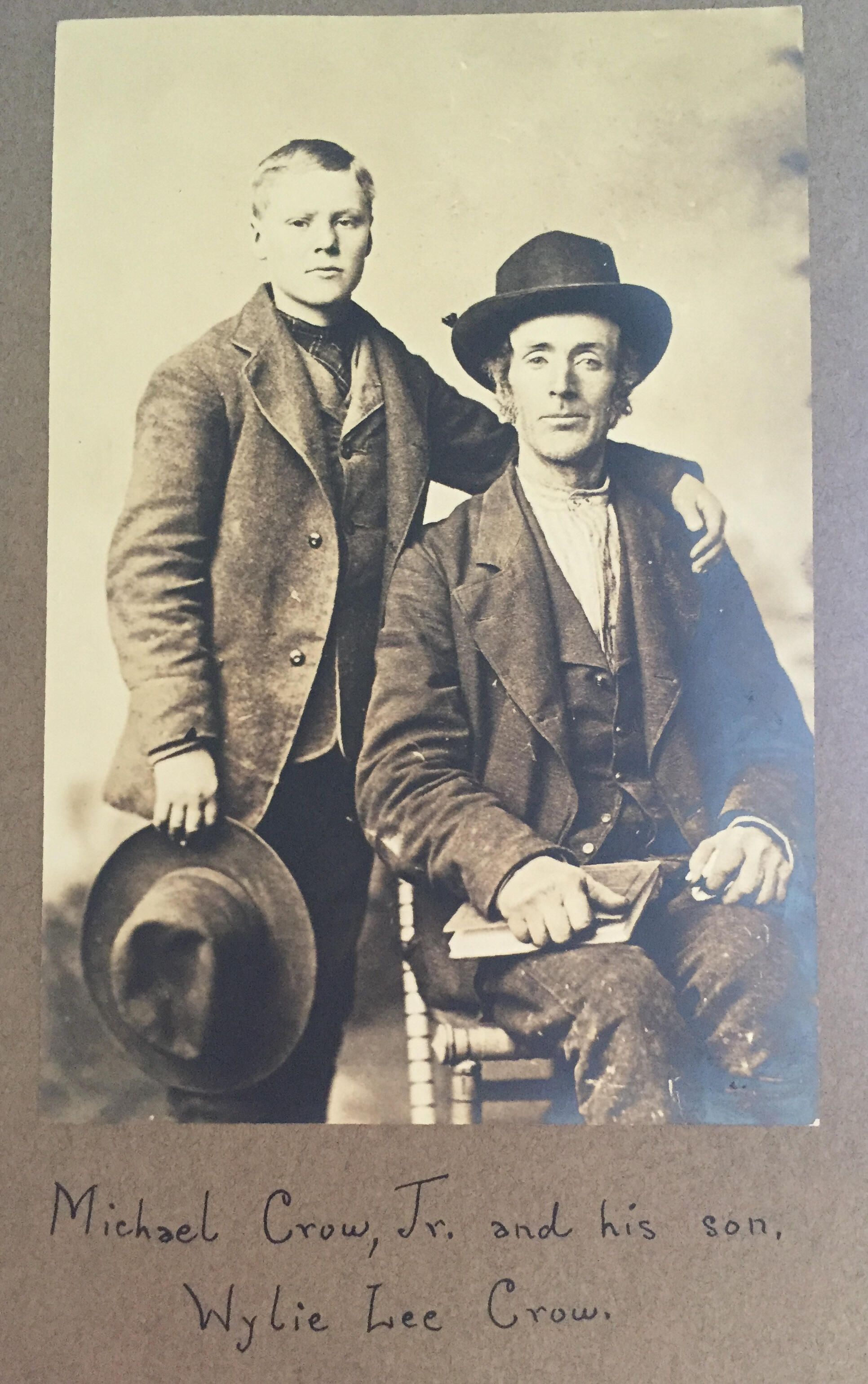 Source Citation: Michael Crow [1818-1908] with his son Wylie Lee Crow [1867-1945], item no. THRJ-AN001-0027, Throckmorton-Bentley Genealogy Series, Dr. Jeannette Franc Throckmorton Collection, Greene Connections Archives Project (www.GreeneConnections.com).