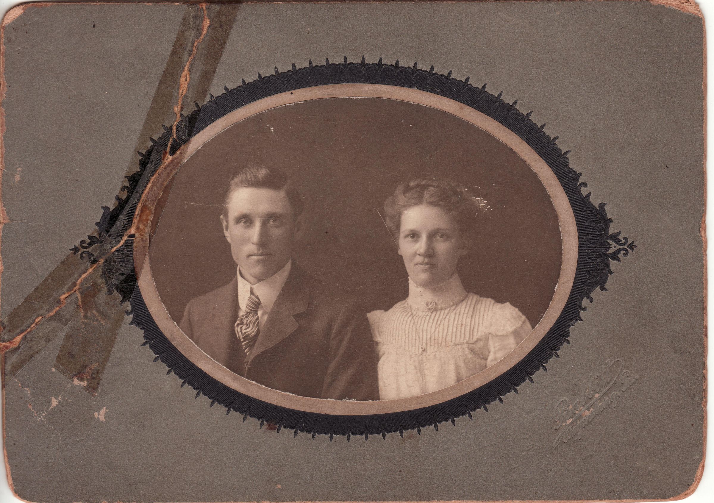 SOURCE CITATION: James William Shaw [1876-1948] and his wife, Etta Ann (Swart) Shaw [1878-1966]; image by Babbitt, Waynesburg, Pa., circa 1900-1905; item no. SUPL-AN003-0006, Swart Series, Wayne Carl Swart Collection, Greene Connections Archives Project (www.GreeneConnections.com).