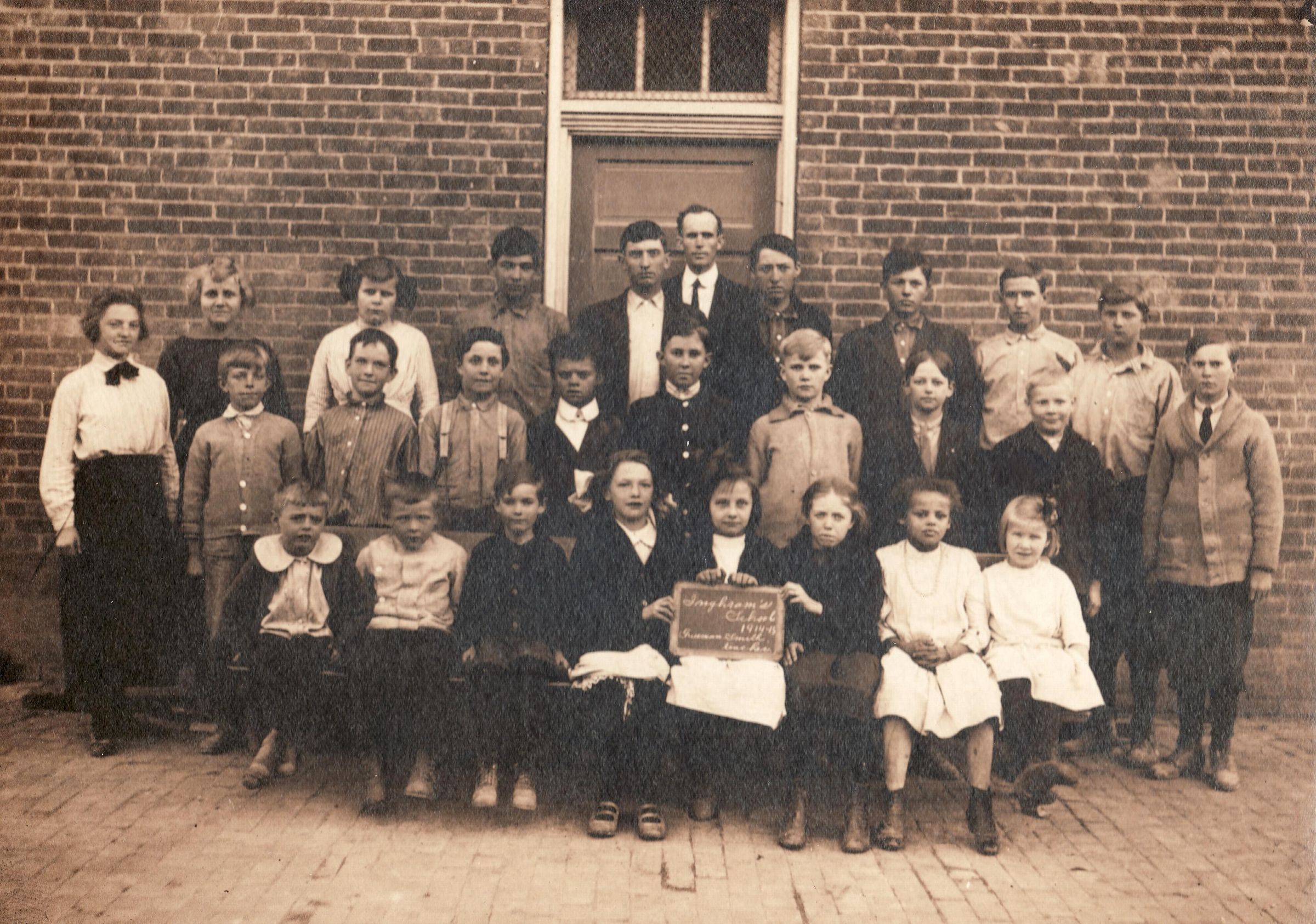 Dated 1914-15. Inghram's School, located along Rt. 218 on the Orndoff farm in Franklin Township, Greene County, Pennsylvania.