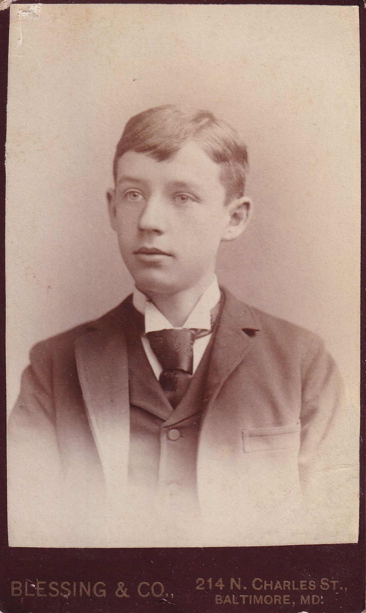SOURCE CITATION: Phelan-Walker Album, Photo 35 - Believed to be Joseph Rogers Walker [1874-]; circa 1880-1890, image by Blessing & Co., 214 N. Charles St., Baltimore, MD.; item no. WAYN-AN008-0035, Waynesburg University Paul R. Stewart Museum Collection, Greene Connections Archives Project (www.GreeneConnections.com).