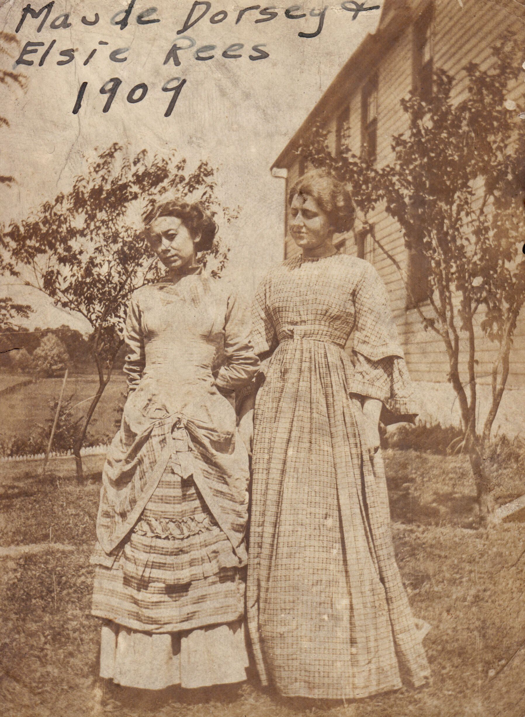 SOURCE CITATION: [Left-Right]: Maude Dorsey, Elsie Huffman (Rees) Toothman; dated 1909; item no. TOOL_AN002_0007, Rees Series, Melvin Lee Toothman Collection, Greene Connections Archives Project (www.GreeneConnections.com).