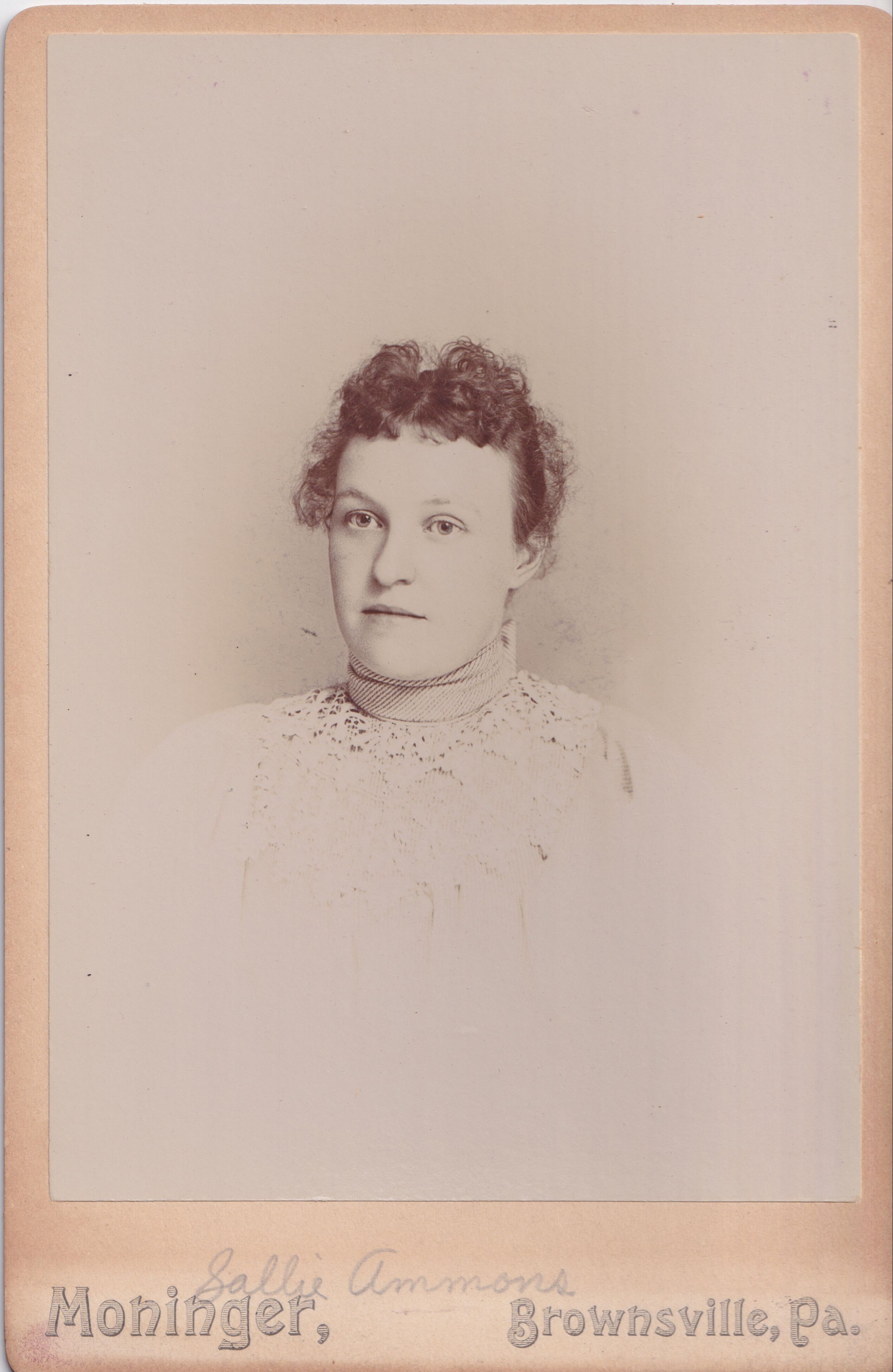 SOURCE CITATION: Ammons-Moredock Album 02, Photo 11 - Sarah Jane Ammons [1865-1952]; circa 1890-1900, image by Moninger, Brownsville, Pa.; item no. MORE-AN003-0011, Ammons-Moredock Collection, Greene Connections Archives Project (www.GreeneConnections.com).