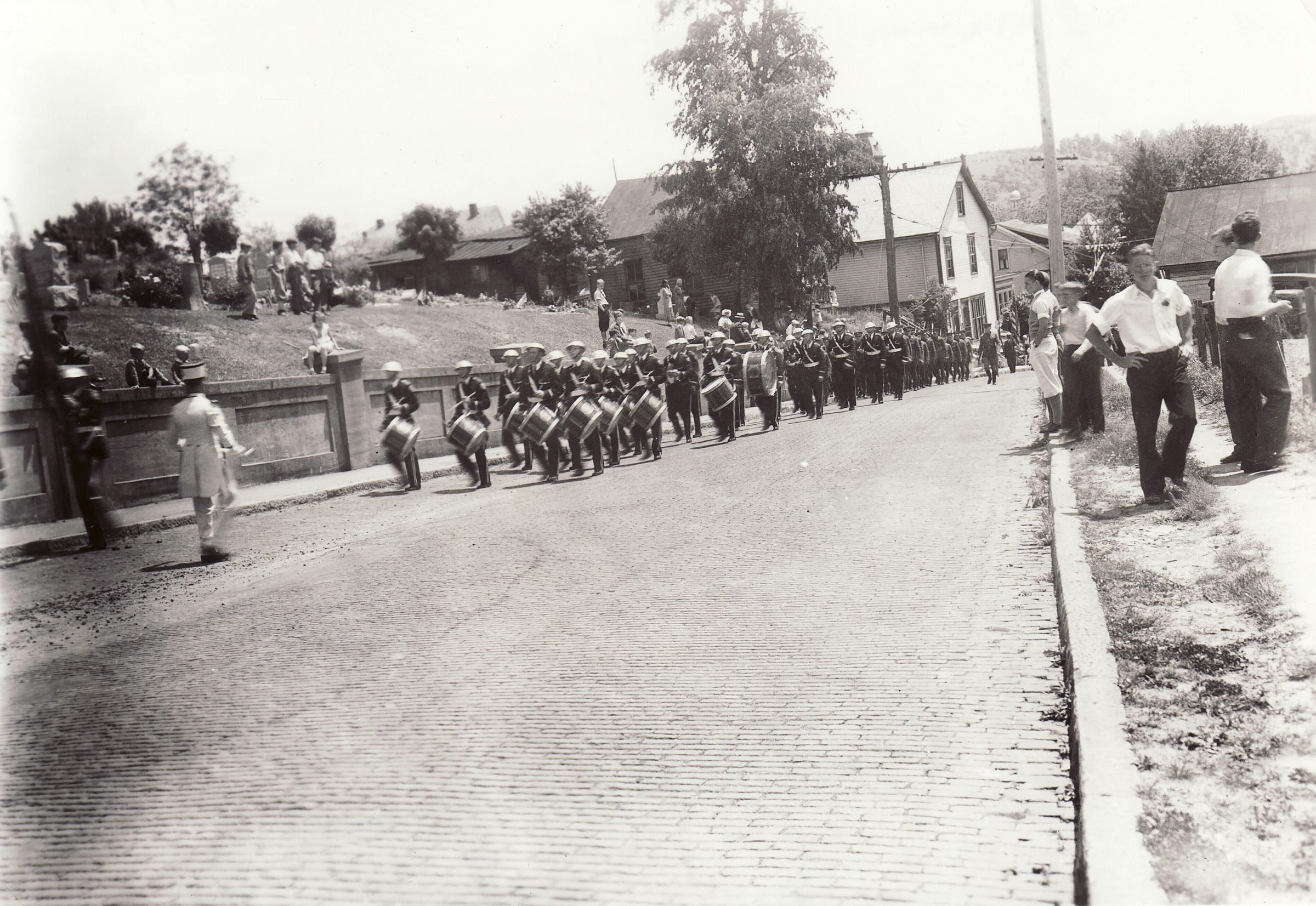 Source Citation: Parade headed into Green Mount Cemetery on Morris Street, item no. GCHS-AN027-0001-0096A, Greene County Historical Society Collection, Greene Connections Archives Project (www.GreeneConnections.com).