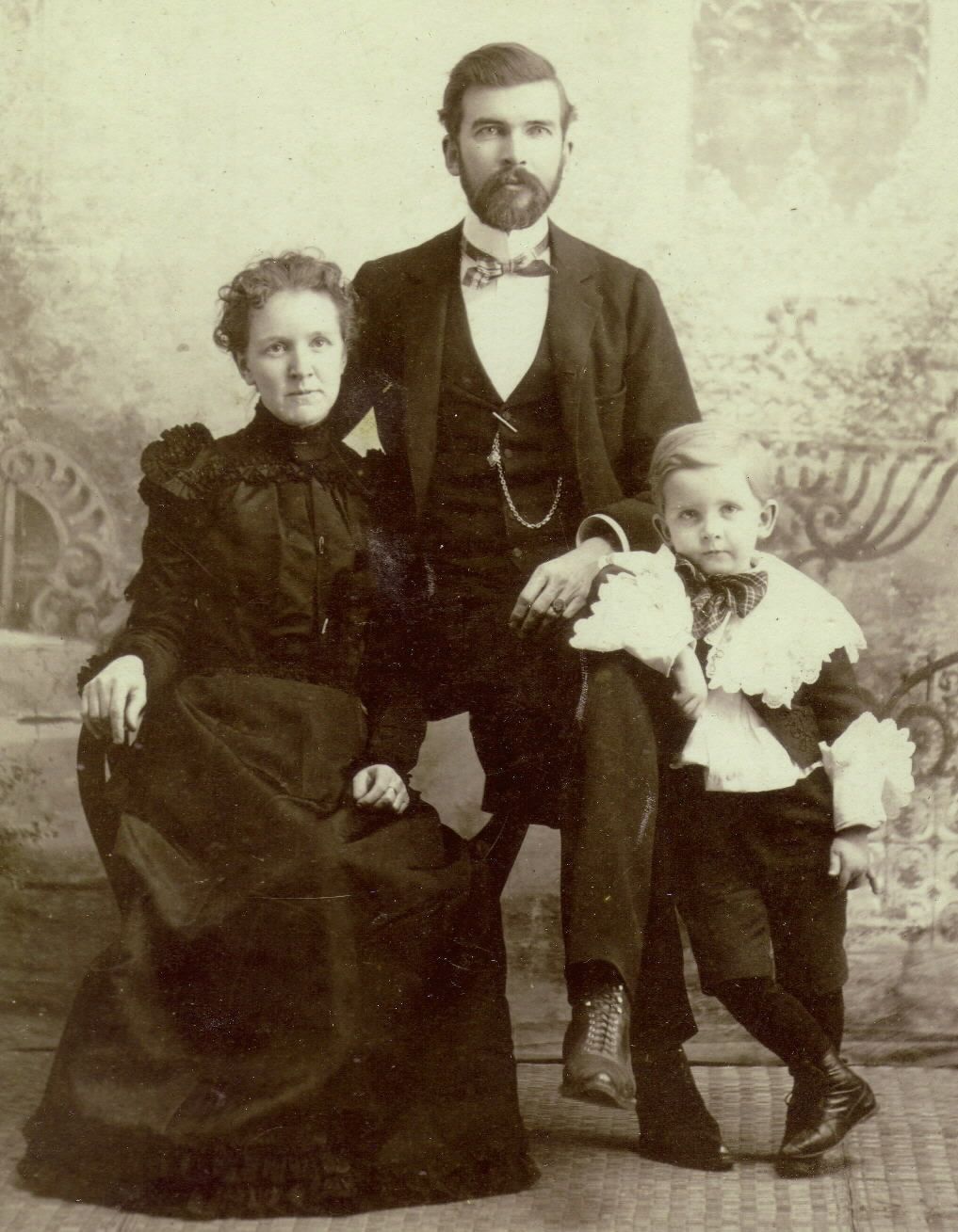 Source Citation: George Brinton McClellan Jacobs and Ina Luella (Maxwell) Jacobs with their son, item no. JACB_AN001_0031, Helen Mae (Jacobs) Fonner Collection, shared by George and Anna (Fonner) Blystone, Greene Connections Archives Project (www.GreeneConnections.com).