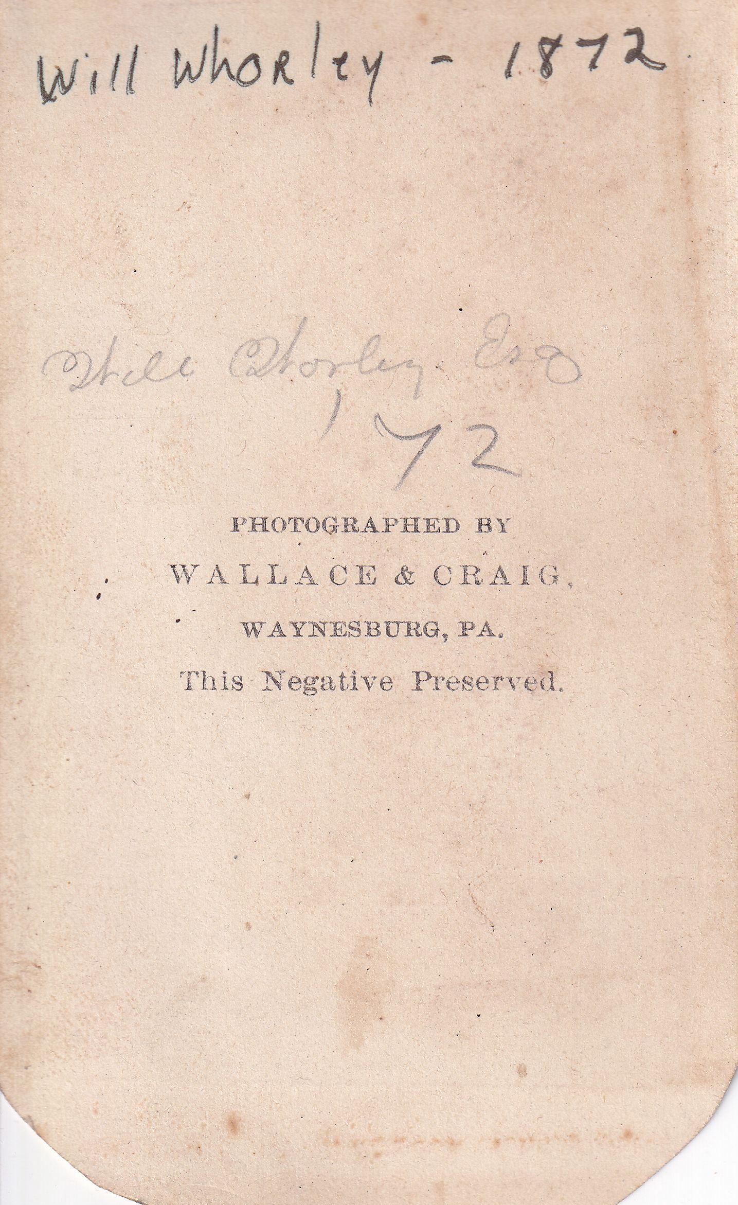 Carte-de-visite of William Gordon Worley [1846-1928], Waynesburg College, Class of 1872 - son of John Inghram Worley and Maria Gordon.