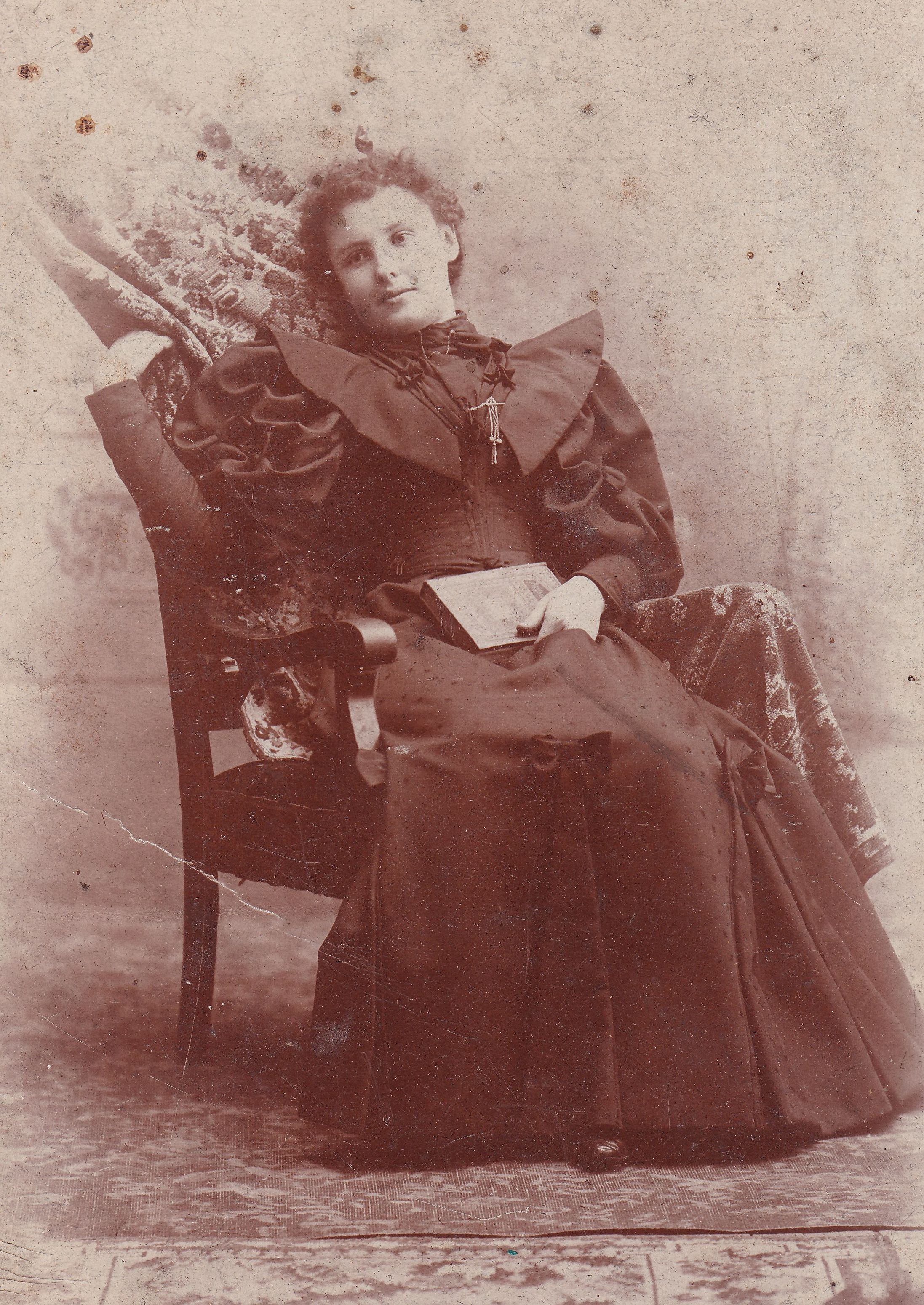 SOURCE CITATION: Elizabeth (Conn) Hatfield [1868-1948]; circa 1890-1895, image by G. C. Acker, Bedford, Iowa; item no. MORS-AN003-0001, Hatfield Series, Ruth Cecilia (Morris) (Shultz) Minor Collection; Greene Connections Archives Project (GreeneConnections.com).