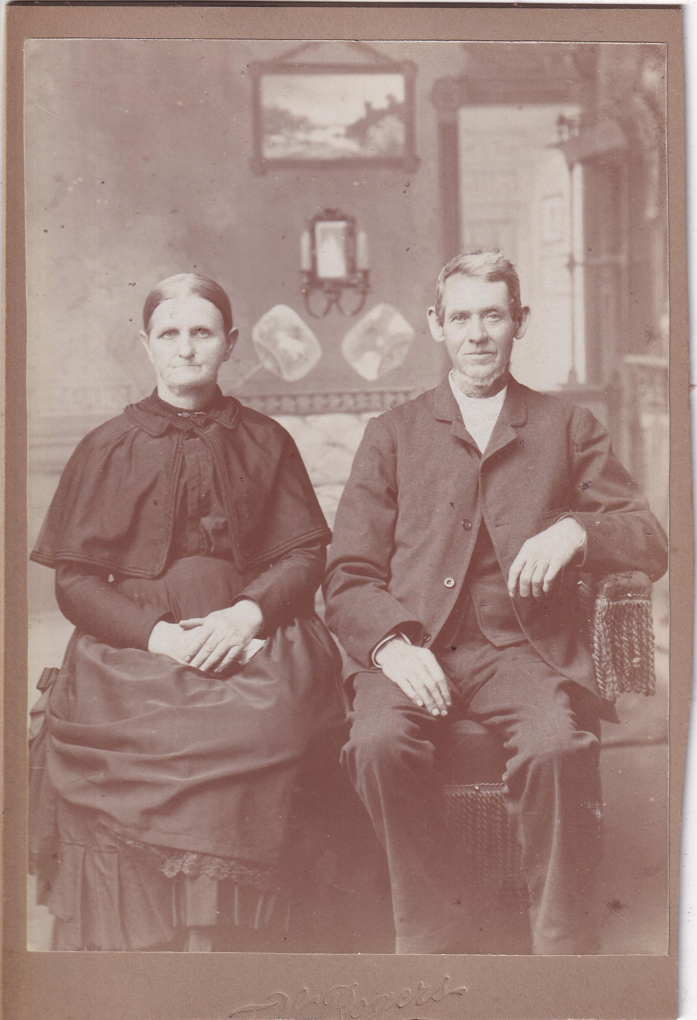 SOURCE CITATION: Kline-Moredock Album 01, Photo 12 - Simon Moredock [1824-1904] and his wife, Mary Jane (Reynolds) Moredock [1830-1904]; circa 1875-1895, image by T. W. Rogers, Carmichaels, Pa.; item no. MORE-AN004-0012, Ammons-Moredock Collection, Greene Connections Archives Project (www.GreeneConnections.com).