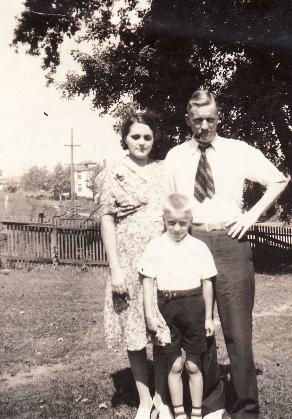 SOURCE CITATION: Walter Whetzel [1910-1999], his wife, Olive Blanch (Byers) Whetzel [1914-1988], and their son, Robert Dewayne Whetzel [1932-2016]; circa 1940; item no. WHET_AN001_0003_0008, Robert Dewayne and Margery Ellen (Moore) Whetzel Collection, Greene Connections Archives Project (GreeneConnections.com).