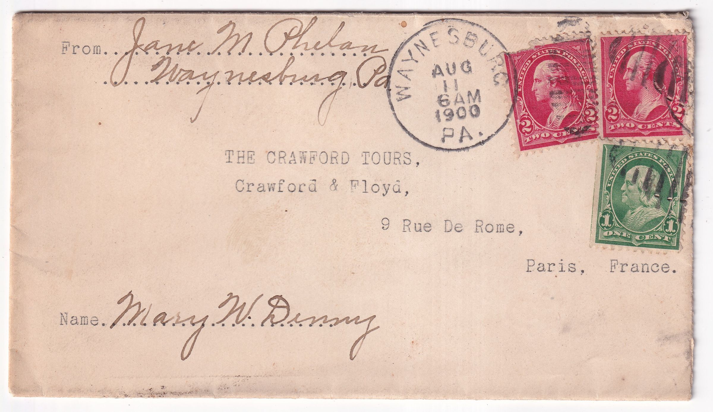 Jane M. Phelan (Waynesburg, Pa.) to Mary W. Denny (Paris, France), letter, 10 August 1900; Josephine Denny Collection, privately held by Farley Toothman, 2025.