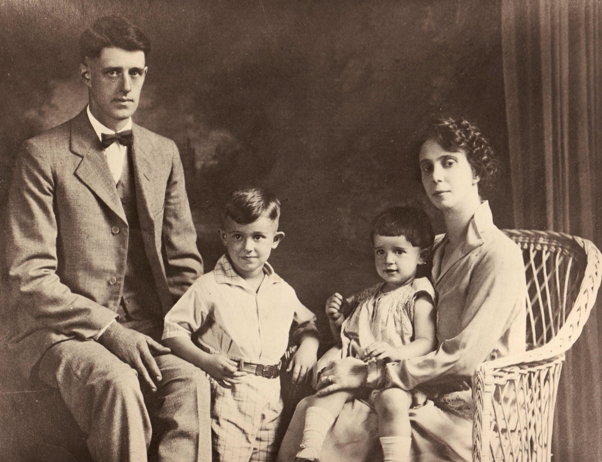 Source Citation: [Left-Right]: Russell Burdette Morris, Gerald Morris, Lucille Morris, Elsie (Woodruff) Morris, item no. RINE_AN001_0067, Russell Rinehart Collection, shared by Albie Rinehart, Greene Connections Archives Project (www.GreeneConnections.com).