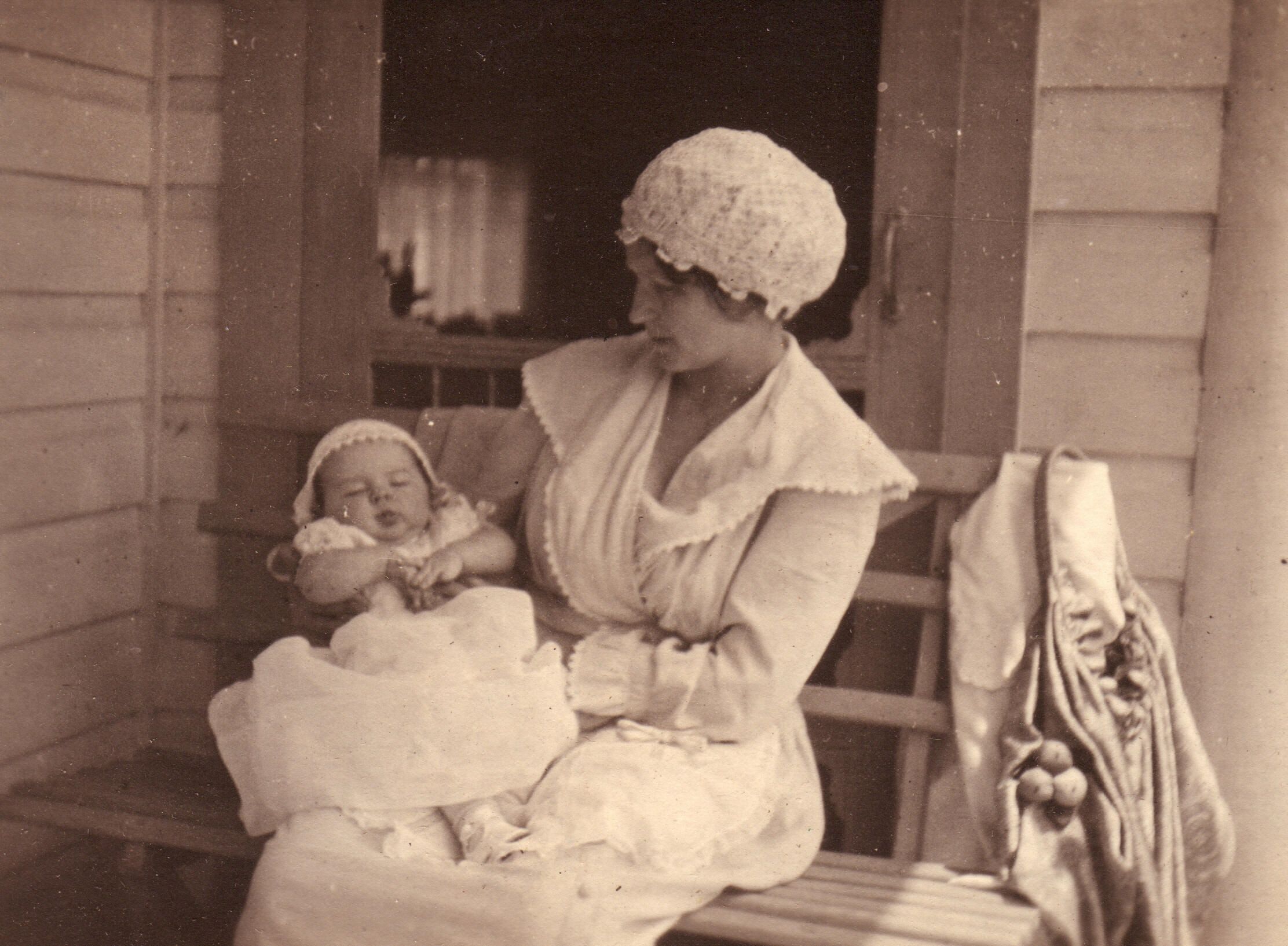 Source Citation: Ida (Rinehart) Woodruff holding her daughter, Aliff (Woodruff) (Carpenter) Anderson, item no. RINE_AN001_0068, Russell Rinehart Collection, shared by Albie Rinehart, Greene Connections Archives Project (www.GreeneConnections.com).