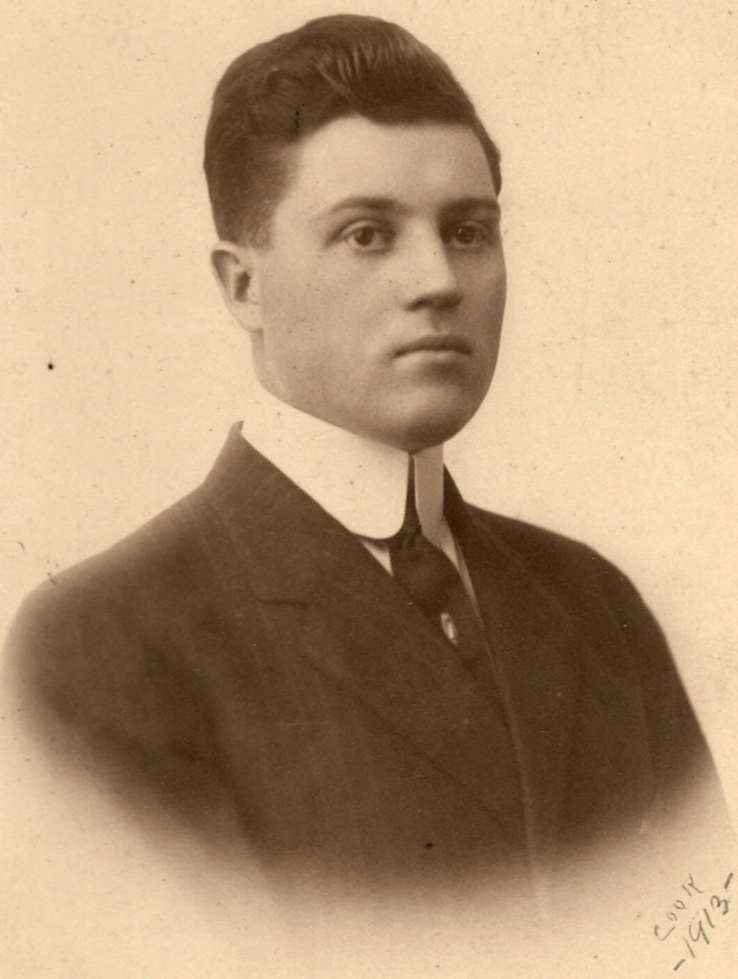 SOURCE CITATION: Glenn Jacob Roy Thornton Toothman Sr. [1891-1967]; dated 1913, image by Cook; item no. TOOK_AN003_0001_0011, Toothman-Hoult Series, Katherine Jane (Throckmorton) Toothman Collection, Greene Connections: Greene County, Pennsylvania Archives Project (www.GreeneConnections.com).