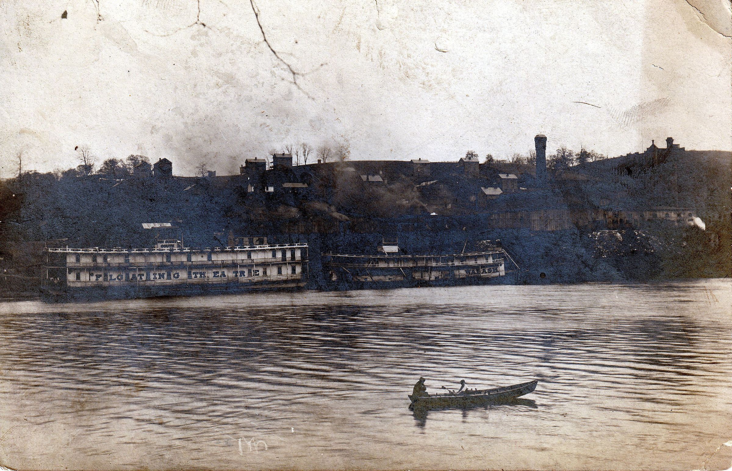 SOURCE CITATION: Packet boats on the Monongahela River, near Greensboro, Monongahela Township, Greene County, Pennsylvania; circa 1900-1920; item no. MILB-AN001-0005-0002, Mary (Vance) McCann Collection, shared by her grandson, William Marshall Miller; Greene Connections Archives Project (www.GreeneConnections.com).