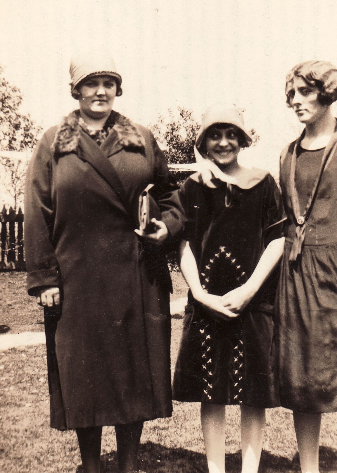 SOURCE CITATION: Three daughters of Joel Freeman Byers and Anna (Cowell) Byers, pictured [Left-Right]: Louise "Lou" (Byers) Campbell [1902-1970], Olive Blanch (Byers) Whetzel [1914-1988], Nellie (Byers) Guesman [1904-1999]; circa 1925; item no. WHET_AN001_0001_0017, Robert Dewayne and Margery Ellen (Moore) Whetzel Collection, Greene Connections Archives Project (GreeneConnections.com).