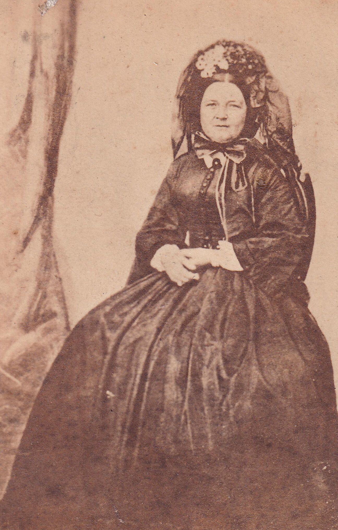 SOURCE CITATION: Willis-Nutt Album, Photo 04 - First Lady Mary (Todd) Lincoln; circa 1860-1870, image by G. W. Tomlinson, Photograph Rooms, 221 Washington St., Boston; item no. MORE-AN001-0004, Ammons-Moredock Collection, Greene Connections Archives Project (www.GreeneConnections.com).
