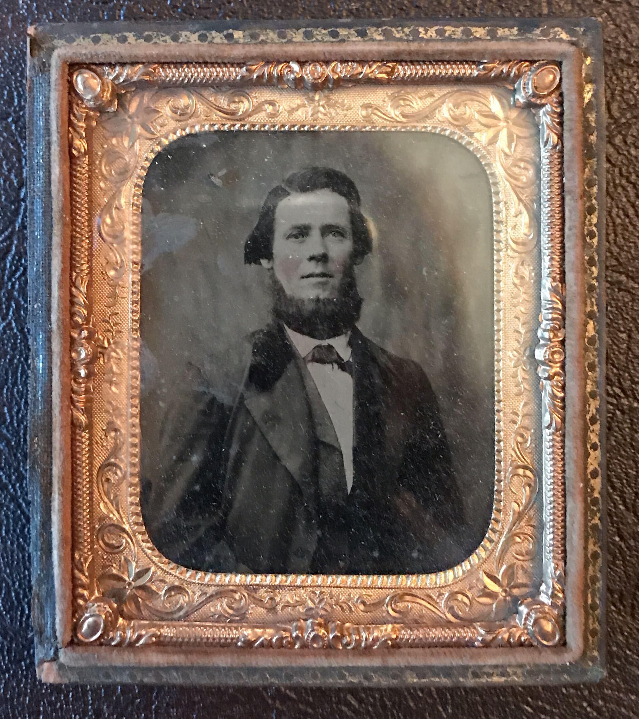 SOURCE CITATION: Cased tintype of Simon Moredock [1824-1904] - husband of Mary Jane Reynolds, son of George Moredock and Priscilla Anderson; circa 1864-1865; item no. MORE-AN007-0001, Moredock Series, Ammons-Moredock Collection, Greene Connections Archives Project (www.GreeneConnections.com).