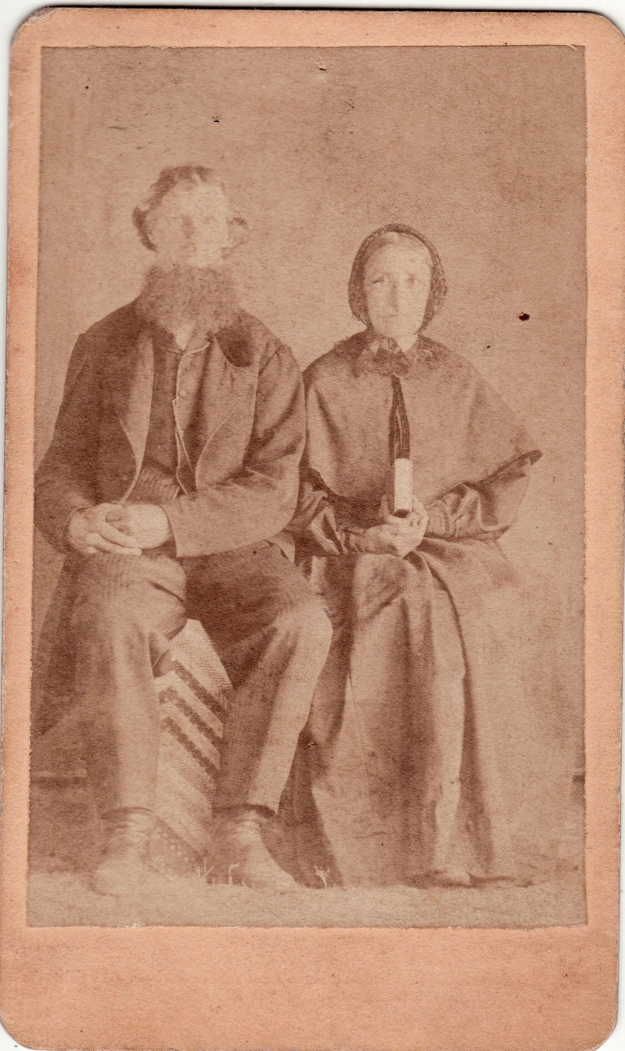 SOURCE CITATION: Carte-de-visite photograph; handwritten inscription reads, "Grandpap & Grandma Martin"; image by N. W. Hancher, Photographer, Claysville, Pa., circa 1865-1875; item no. SUPL-AN006-0001, Martin Series, Wayne Carl Swart Collection, Greene Connections Archives Project (www.GreeneConnections.com).