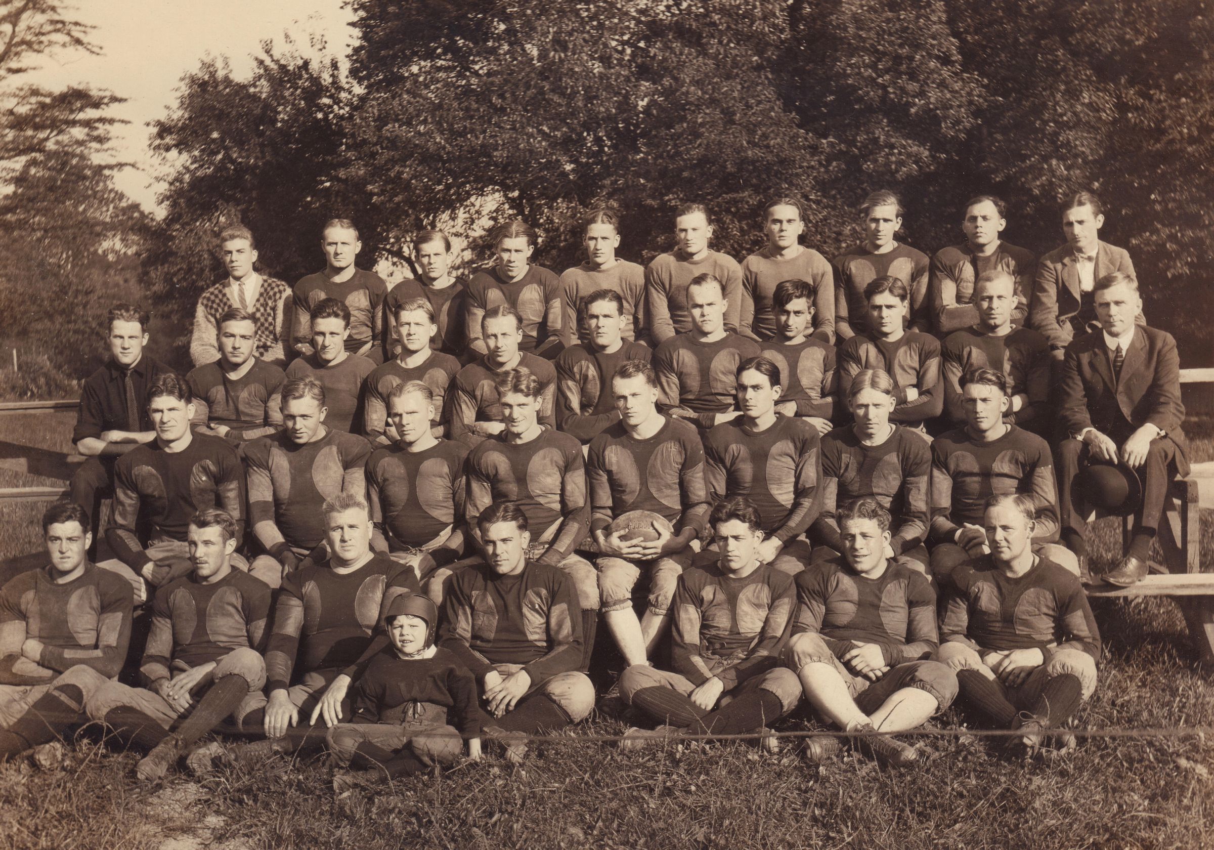 SOURCE CITATION: Waynesburg College football team; circa 1920s-1930s; item no. HUFR-AN003-0002, Roy Huffman Collection, Greene Connections Archives Project (www.GreeneConnections.com).