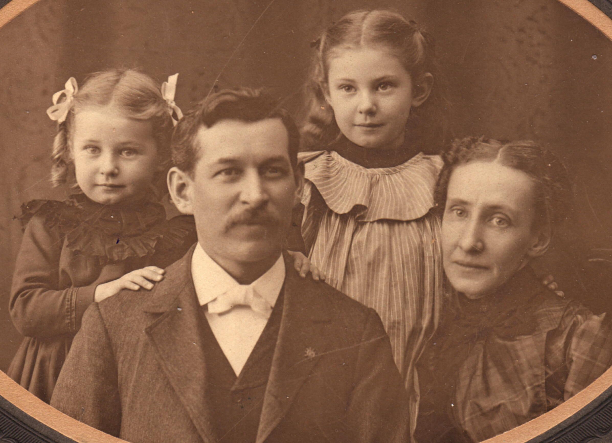 George Harvey Elms and Evaline Florence (Morris) Elms family, [Left-Right]: