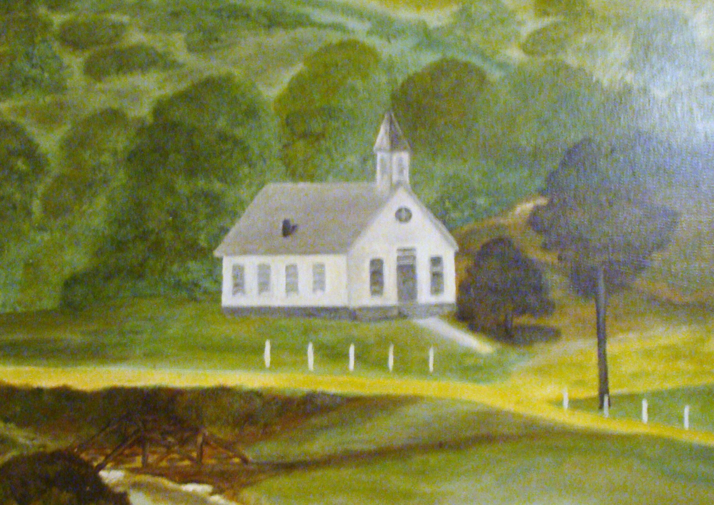 Painting of Enon Baptist Church (built 1881) on the border of East Finley Township, Washington County and Richhill Township, Greene County, Pennsylvania.