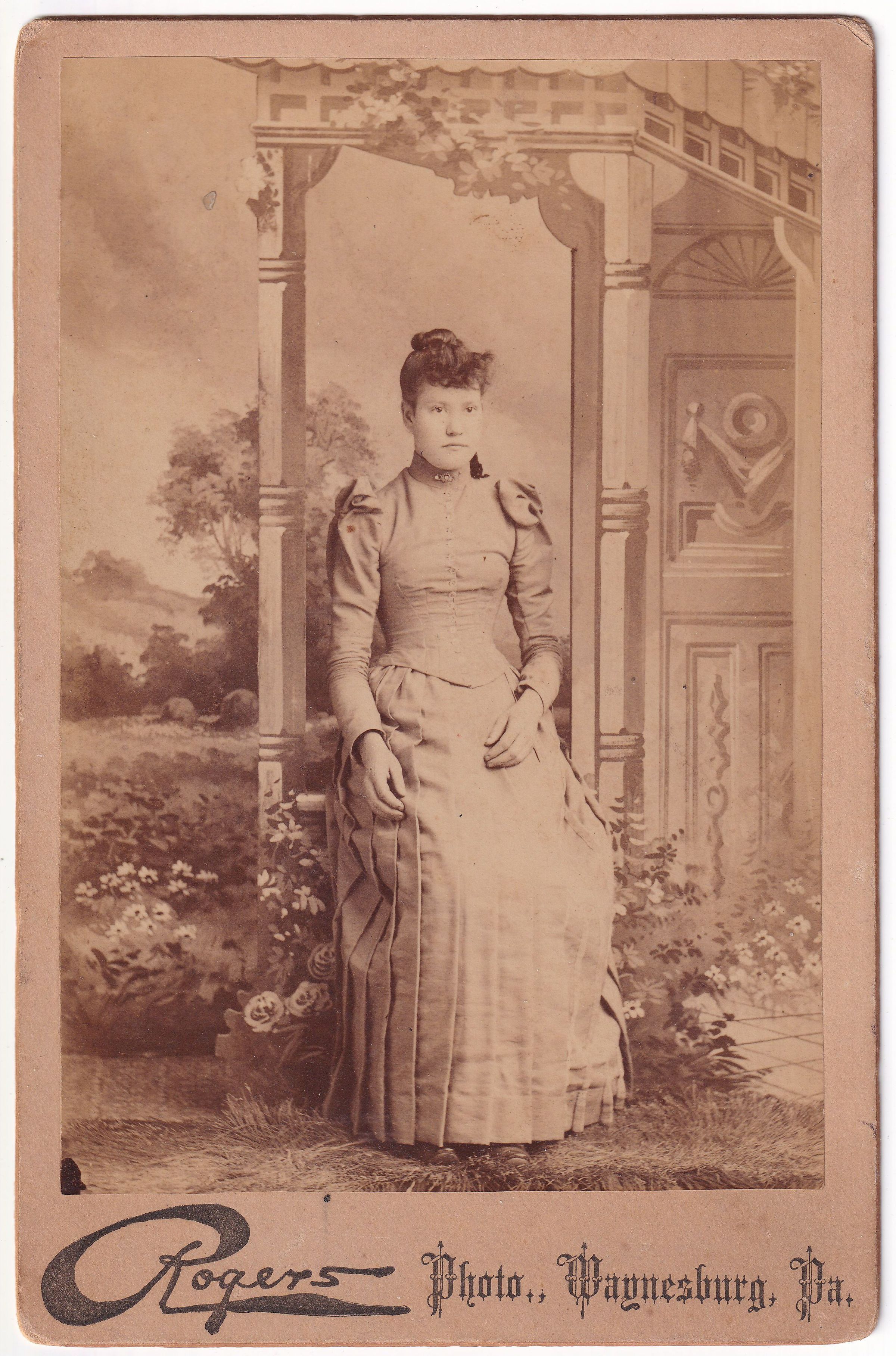 SOURCE CITATION: Believed to be Margaret (Bristor) Shape [1874-1895]; circa 1890, image by Rogers, Photo, Waynesburg, Pa.; item no. CAND-AN007-0040, Candice Lynn Buchanan Collection, Greene Connections Archives Project (GreeneConnections.com).