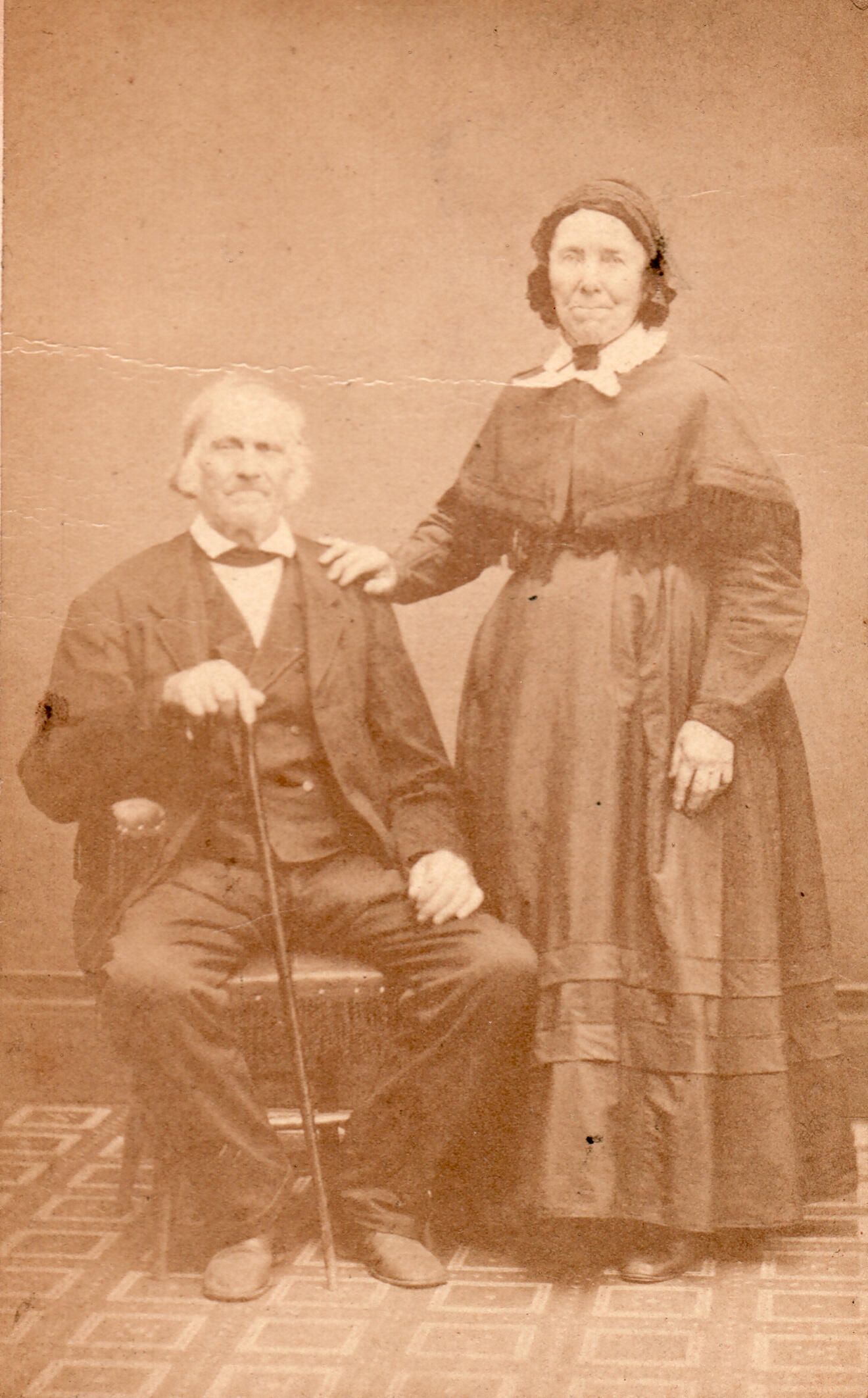 Carte-de-Visite photograph believed to be David McCracken [1799-1875] and his wife, Mary "Polly" (Crall) McCracken [1803-1884]. The couple lived in Fallowfield Township, Washington County, Pennsylvania, prior to their move to Marshall County, West Virginia.
