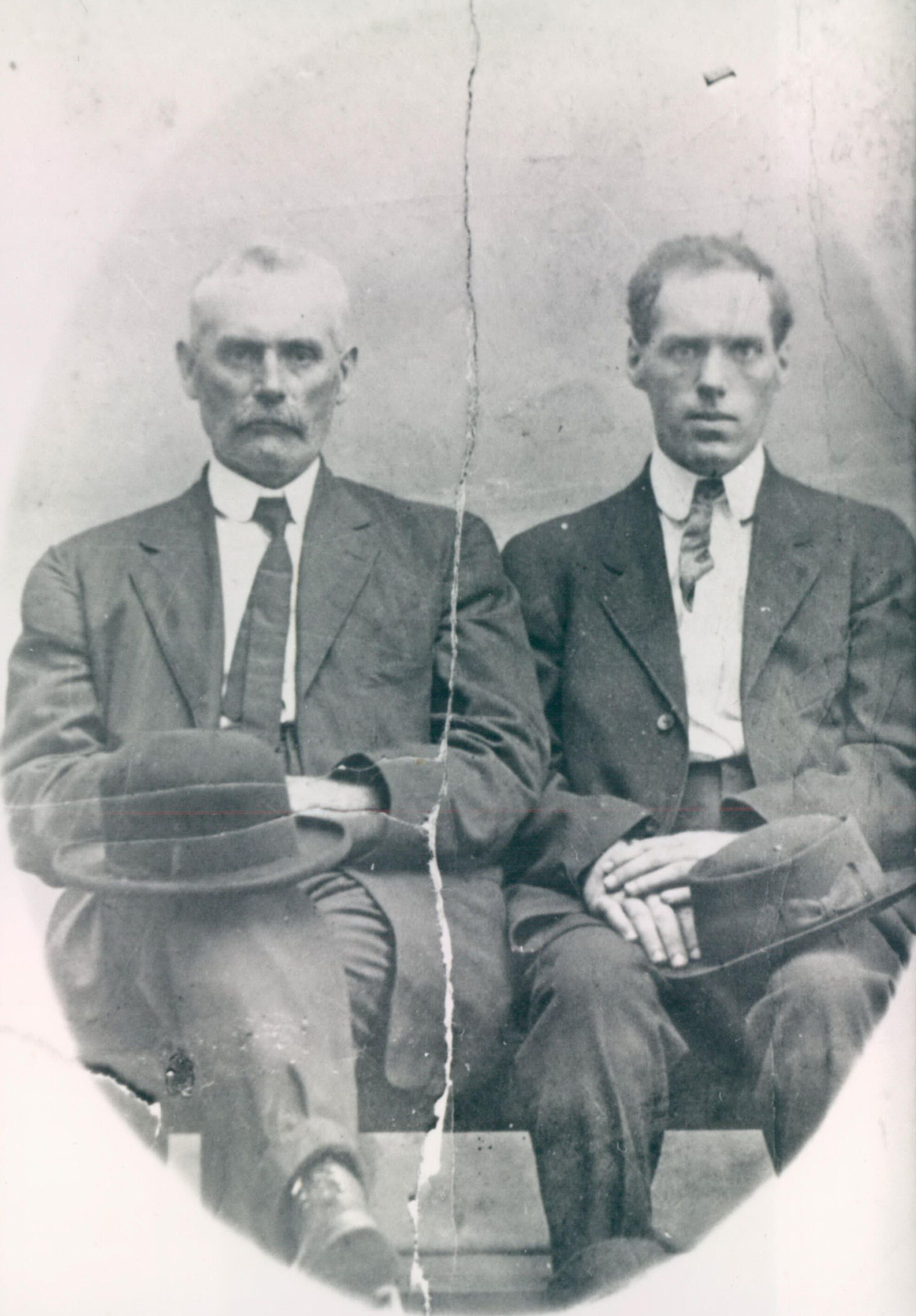 Source Citation: John Wesley Barb and his son William Harvey Dufresne Barb, item no. THRR-AN001-0007, Robin Arlene (Barb) Throckmorton Collection, Greene Connections Archives Project (GreeneConnections.com).