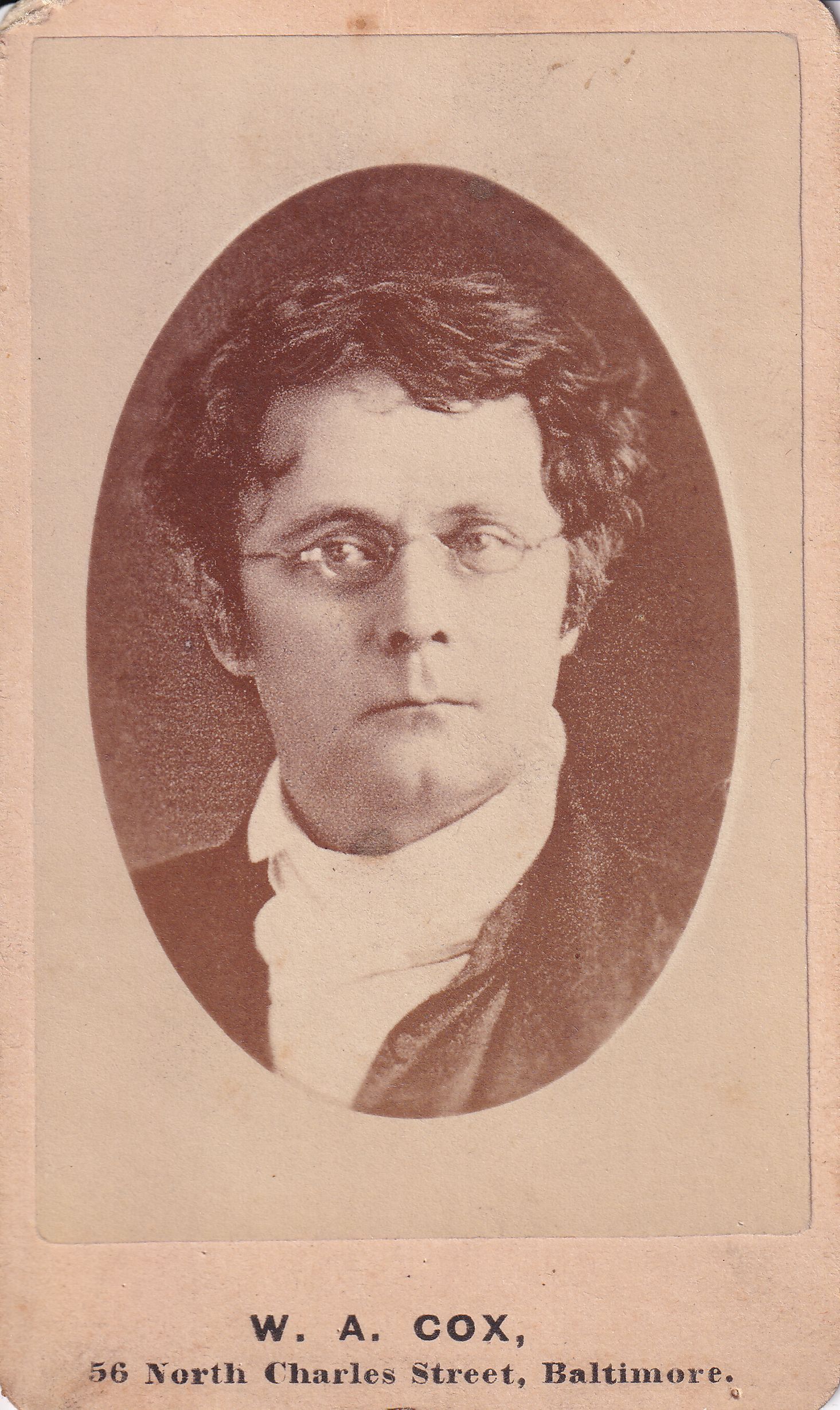 SOURCE CITATION: Phelan-Walker Album, Photo 25 - Joseph Rogers Walker [1796-1879]; carte-de-visite reproduction created by W. A. Cox, 56 North Charles Street, Baltimore, of an earlier daguerreotype or ambrotype photograph; item no. WAYN-AN008-0025, Waynesburg University Paul R. Stewart Museum Collection, Greene Connections Archives Project (www.GreeneConnections.com).
