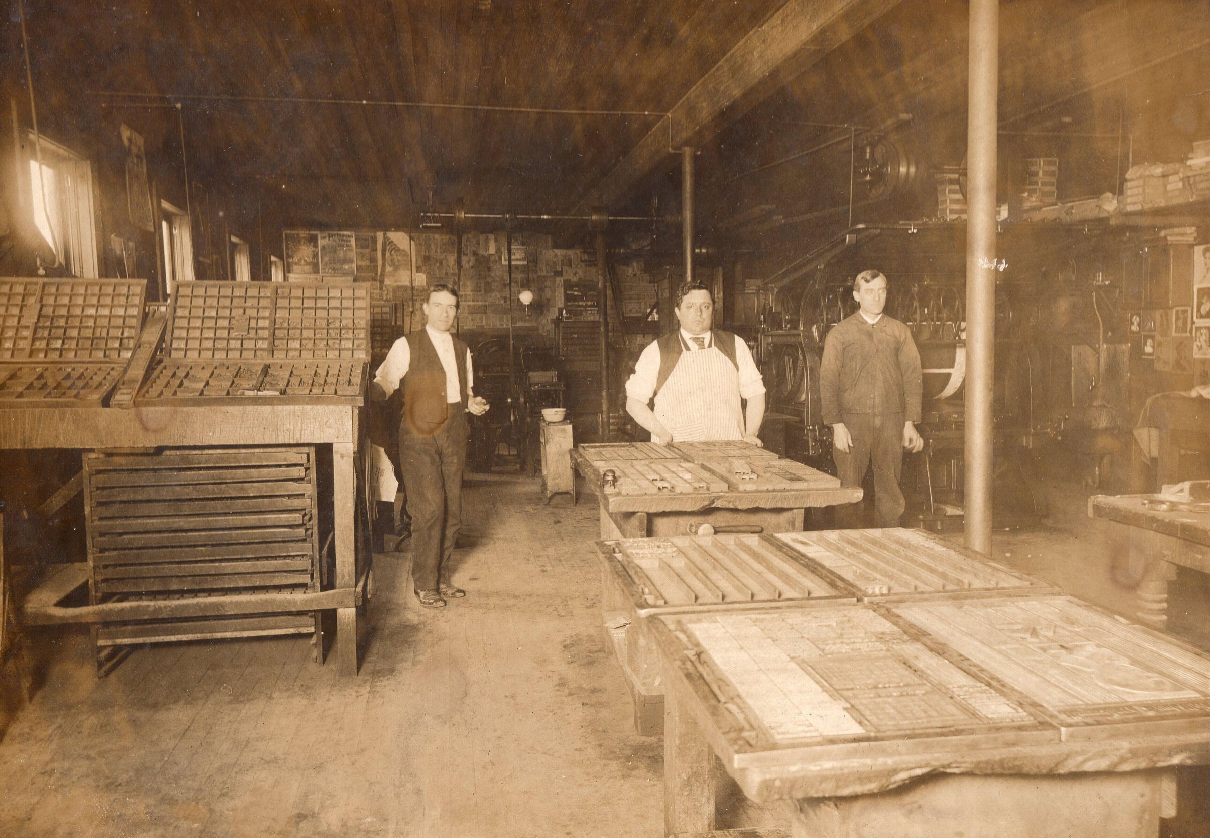 Source Citation: Type Set Room of the Waynesburg Semi-Weekly Messenger, Waynesburg, Greene County, Pennsylvania, item no. CMBL-AN001-0001, Matt W. Cumberledge Collection, Greene Connections Archives Project (www.GreeneConnections.com).
