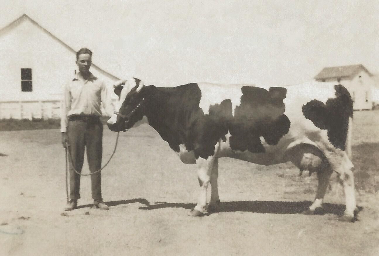 Source Citation: Albert Reese Hoge [1897-1979] with Champion Holstein cow Tilly Alcartra; circa 1915-1920; item no. MORR-AN001-0038, Lynne Gough Collection, Greene Connections Archives Project (www.GreeneConnections.com).