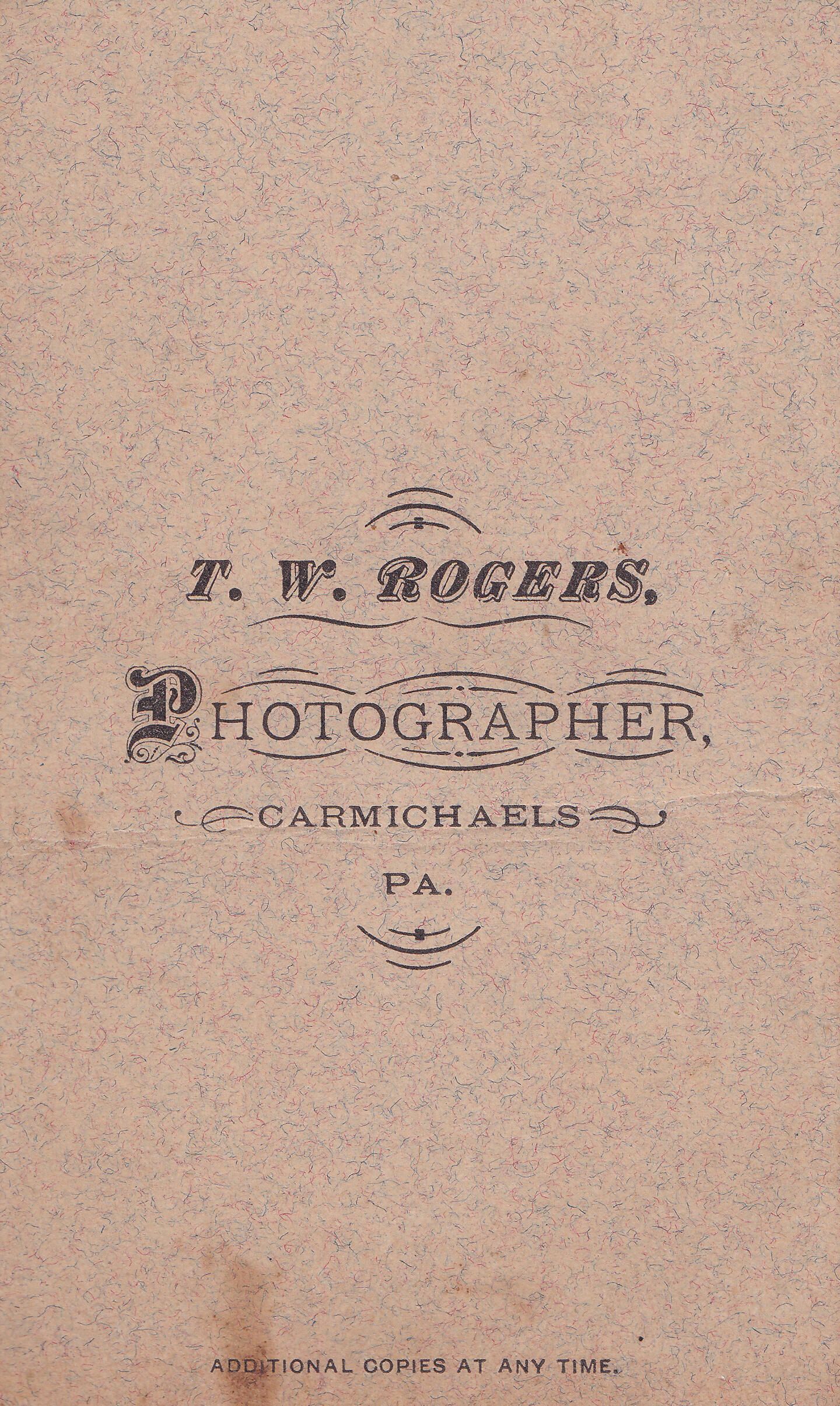 SOURCE CITATION: Ammons-Acklin Album, Loose in album; circa 1870-1890, image by T. W. Rogers, Photographer, Carmichaels, Pa.; item no. MORE-AN005-0012, Ammons-Moredock Collection, Greene Connections Archives Project (www.GreeneConnections.com).