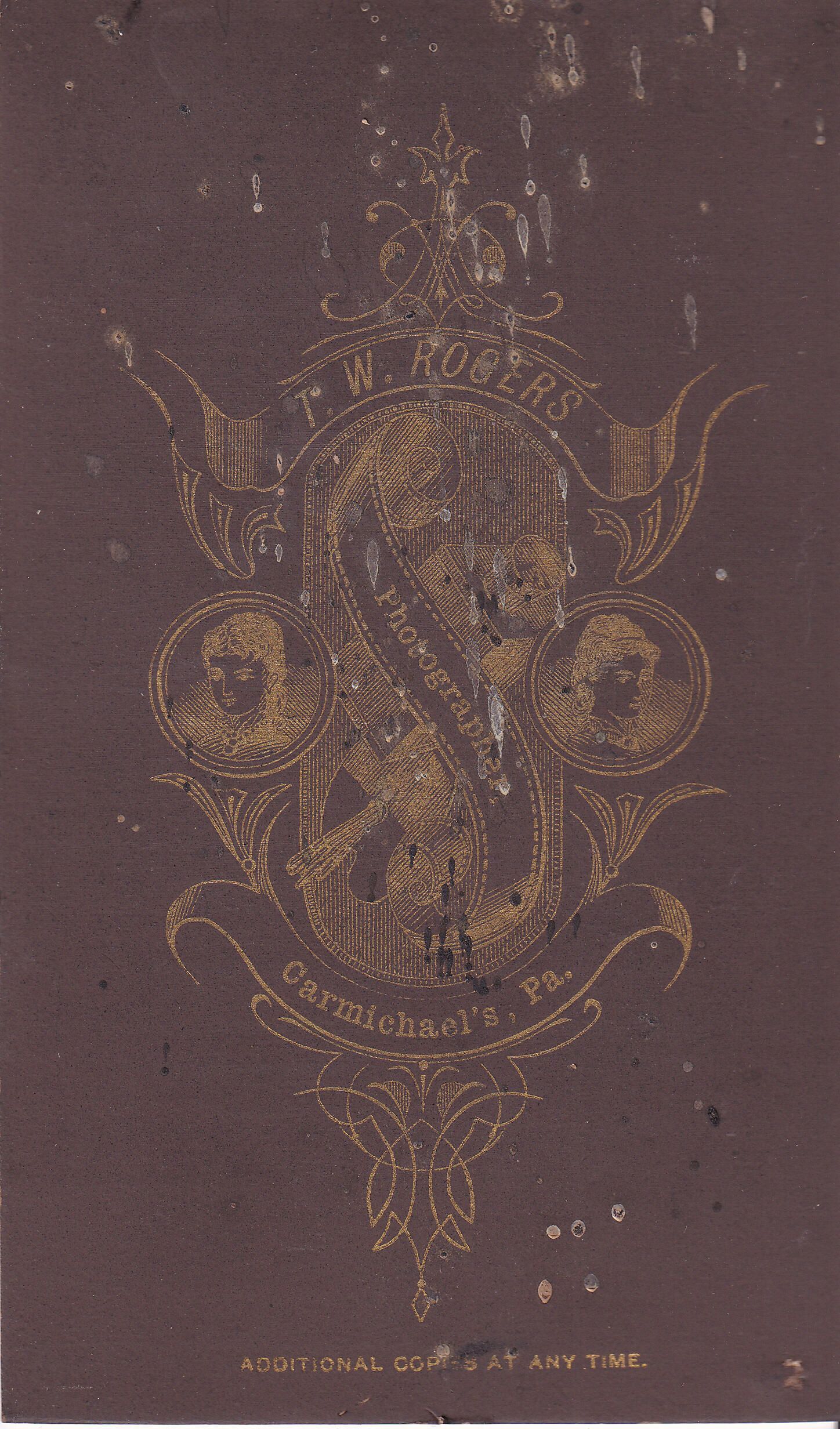 SOURCE CITATION: Ammons-Acklin Album, Loose in album; circa 1870-1890, image by T. W. Rogers, Photographer, Carmichaels, Pa.; item no. MORE-AN005-0016, Ammons-Moredock Collection, Greene Connections Archives Project (www.GreeneConnections.com).