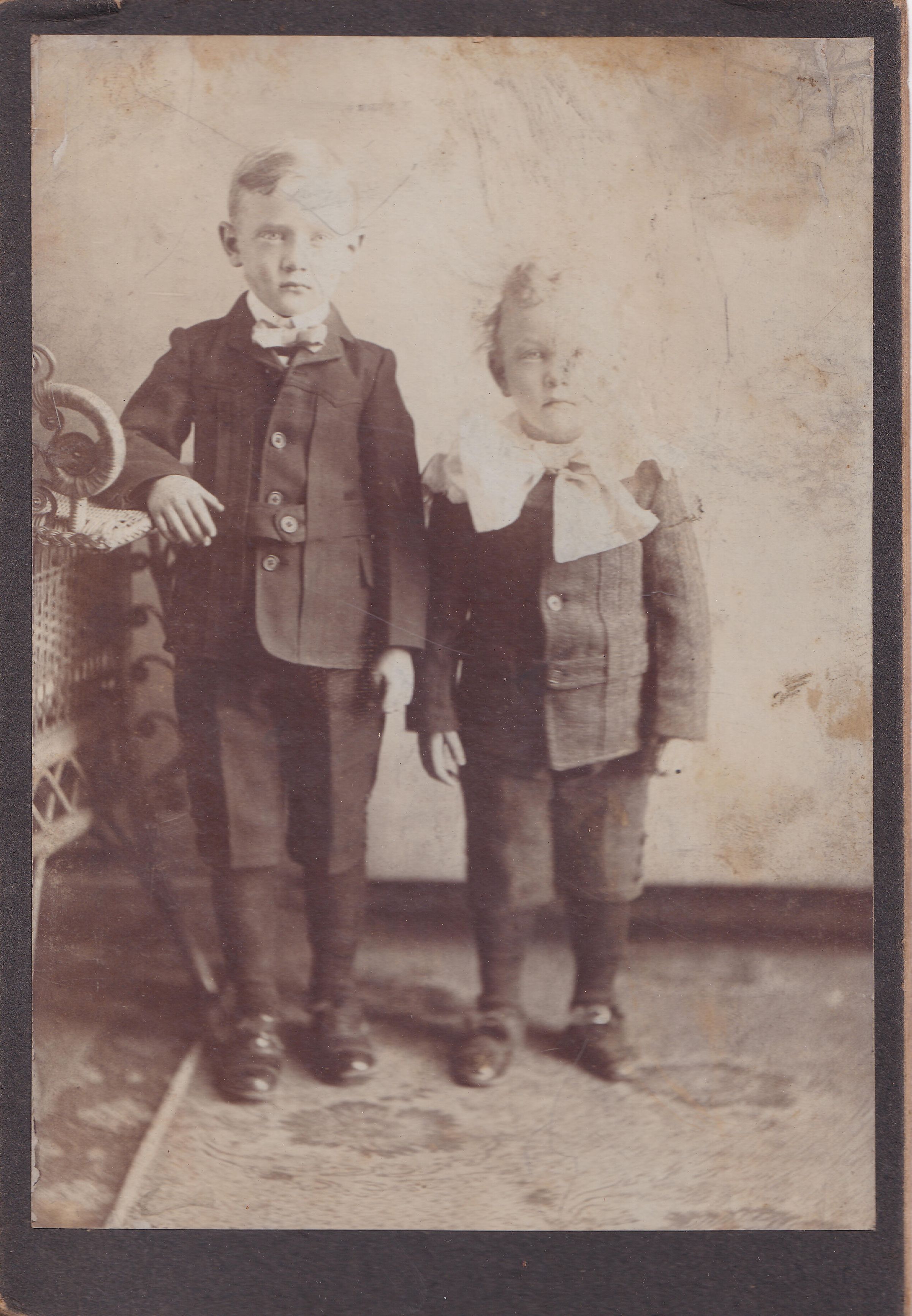 SOURCE CITATION: Ammons-Acklin Album, Photo 07 - [Left-Right]: Roy Eugene Ammons [1897-1963] and Arthur Ammons [1900-1975] - sons of Ellmeth Finley Ammons and Anna Covert Acklin; circa 1900-1905; item no. MORE-AN005-0007, Ammons-Moredock Collection, Greene Connections Archives Project (www.GreeneConnections.com).