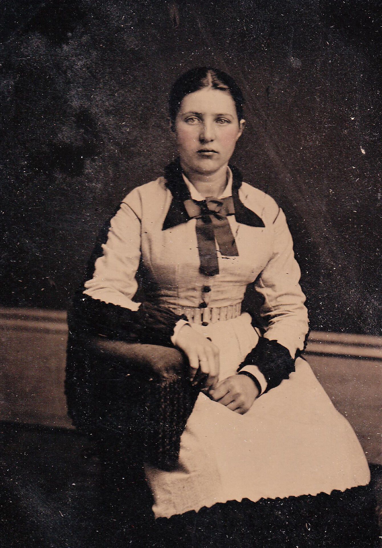 SOURCE CITATION: Ammons-Moredock Album 01, Photo 05 - Elizabeth (Ammons) Gallagher [1860c-1948]; circa 1870-1880; item no. MORE-AN002-0005, Ammons-Moredock Collection, Greene Connections Archives Project (www.GreeneConnections.com).