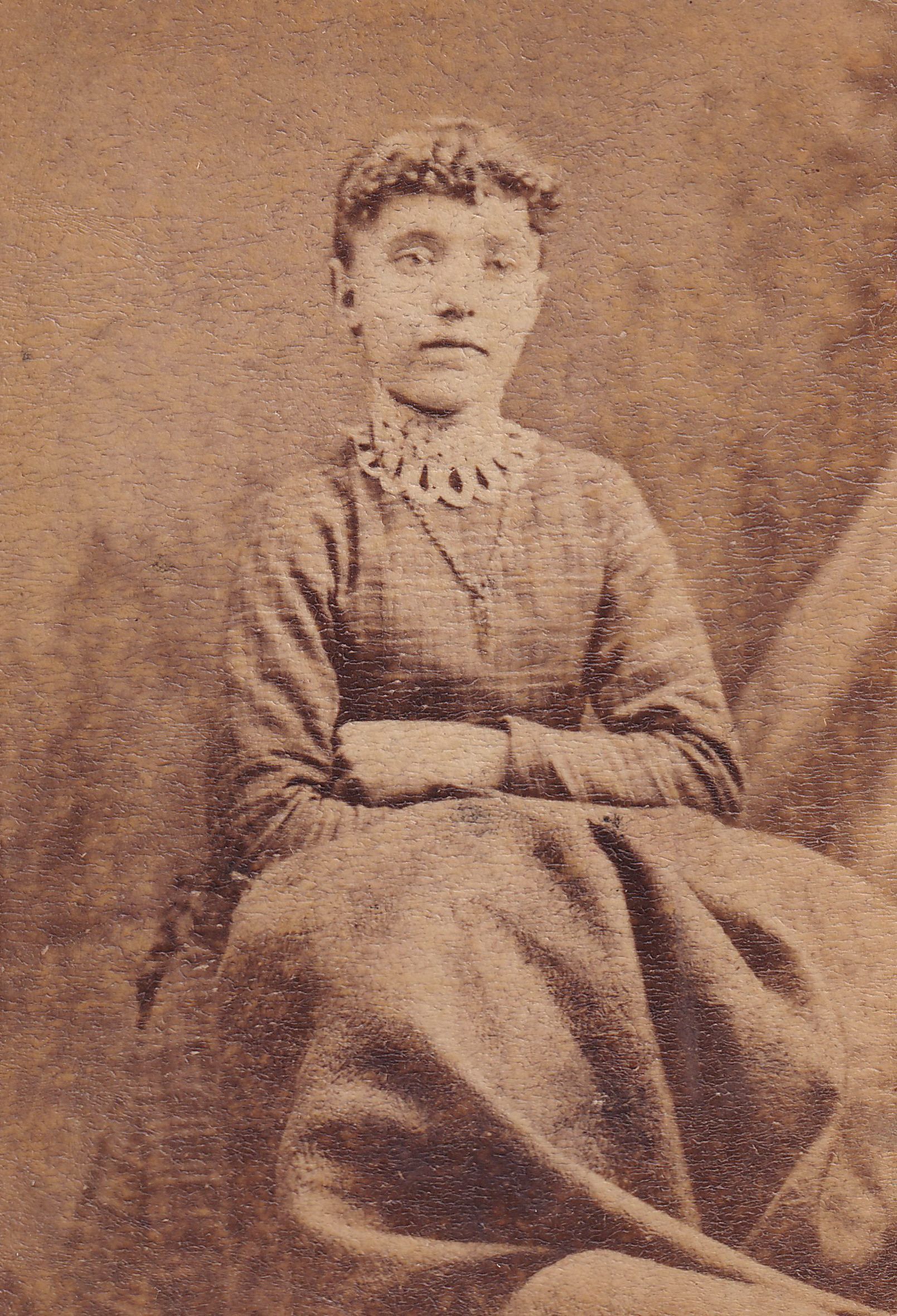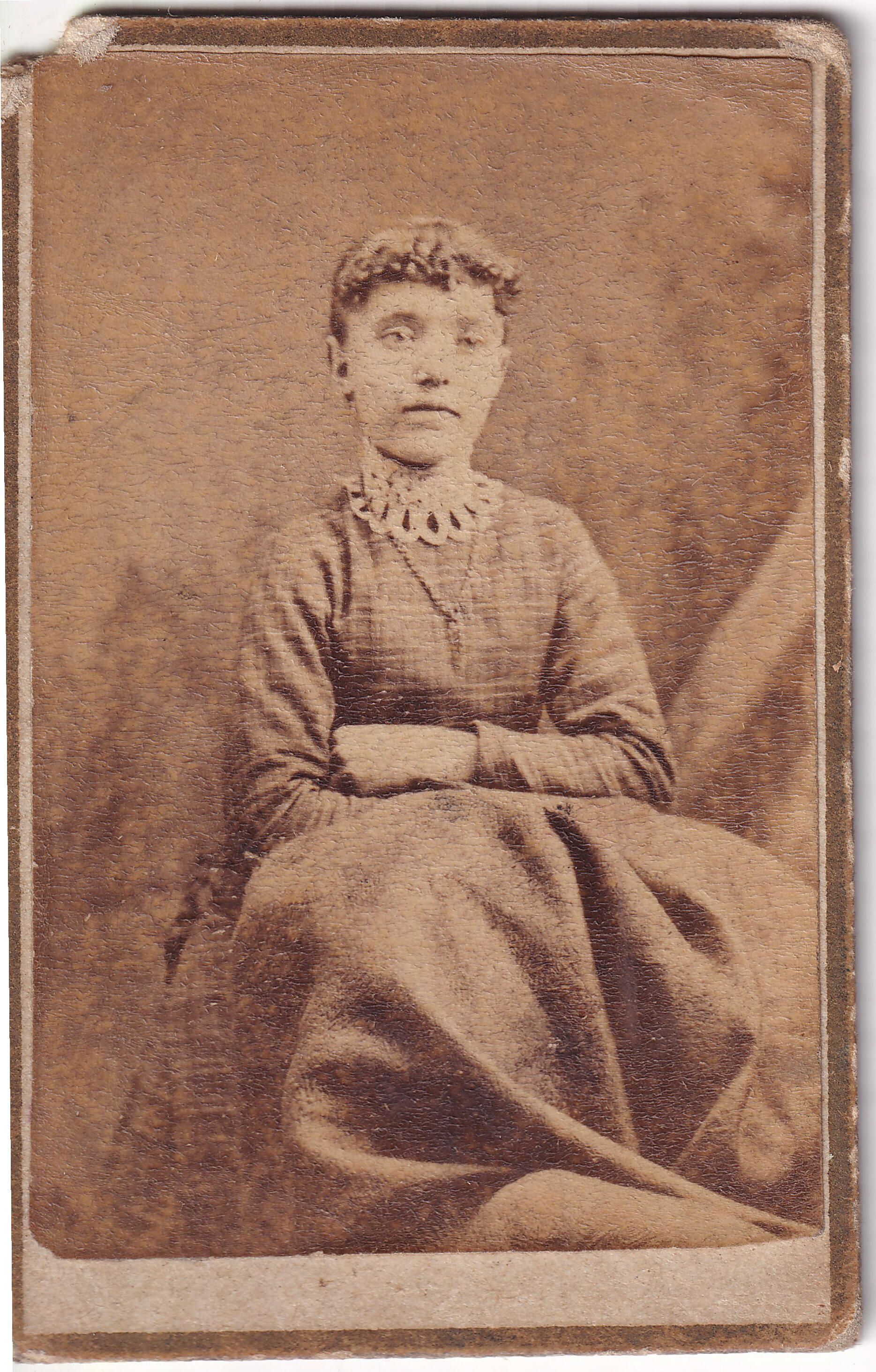 SOURCE CITATION: Ammons-Moredock Album 01, Photo 09 - Believed to be Lucinda "Lou" (Bayard) Denny [1868-1940]; circa 1880-1890; item no. MORE-AN002-0009, Ammons-Moredock Collection; Greene Connections Archives Project (GreeneConnections.com).