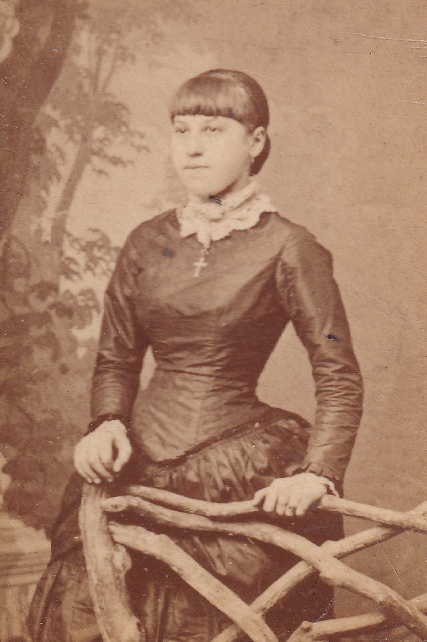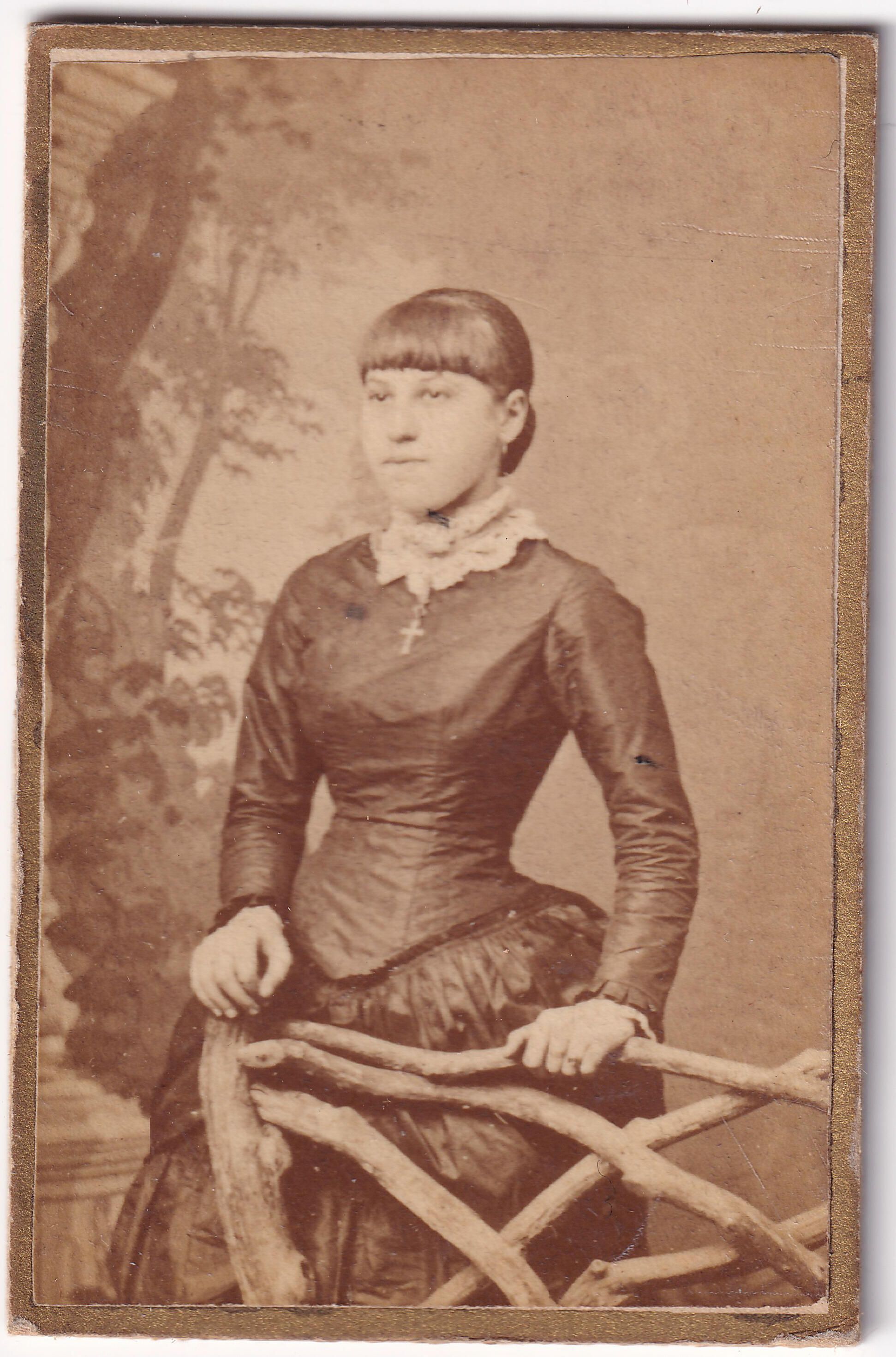 SOURCE CITATION: Ammons-Moredock Album 01, Photo 17 - Believed to be Sarah Jane "Jennie" (Sharpnack) Walton [1867-1942]; circa 1880-1890, image by C. S. Franks, Carmichaels, Pa.; item no. MORE-AN002-0017, Ammons-Moredock Collection, Greene Connections Archives Project (www.GreeneConnections.com).