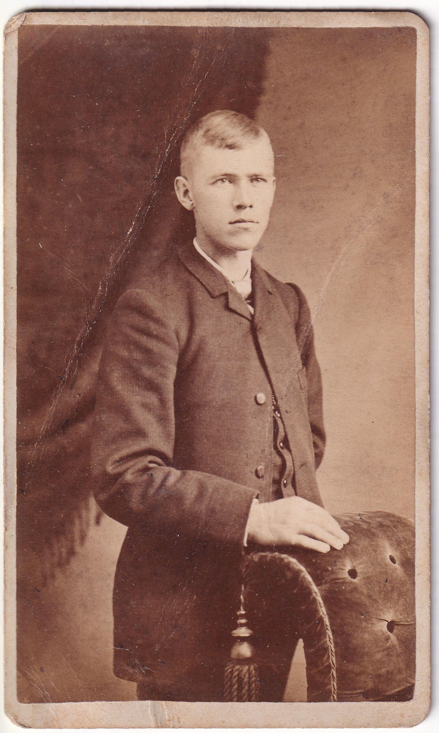 SOURCE CITATION: Ammons-Moredock Album 01, Photo 28 - Believed to be John Ellsworth Metz [1864-1935]; circa 1880-1890, image by Monongahela Photograph Boat, T. A. Sharpnack, Artist; item no. MORE-AN002-0028, Ammons-Moredock Collection, Greene Connections Archives Project (www.GreeneConnections.com).