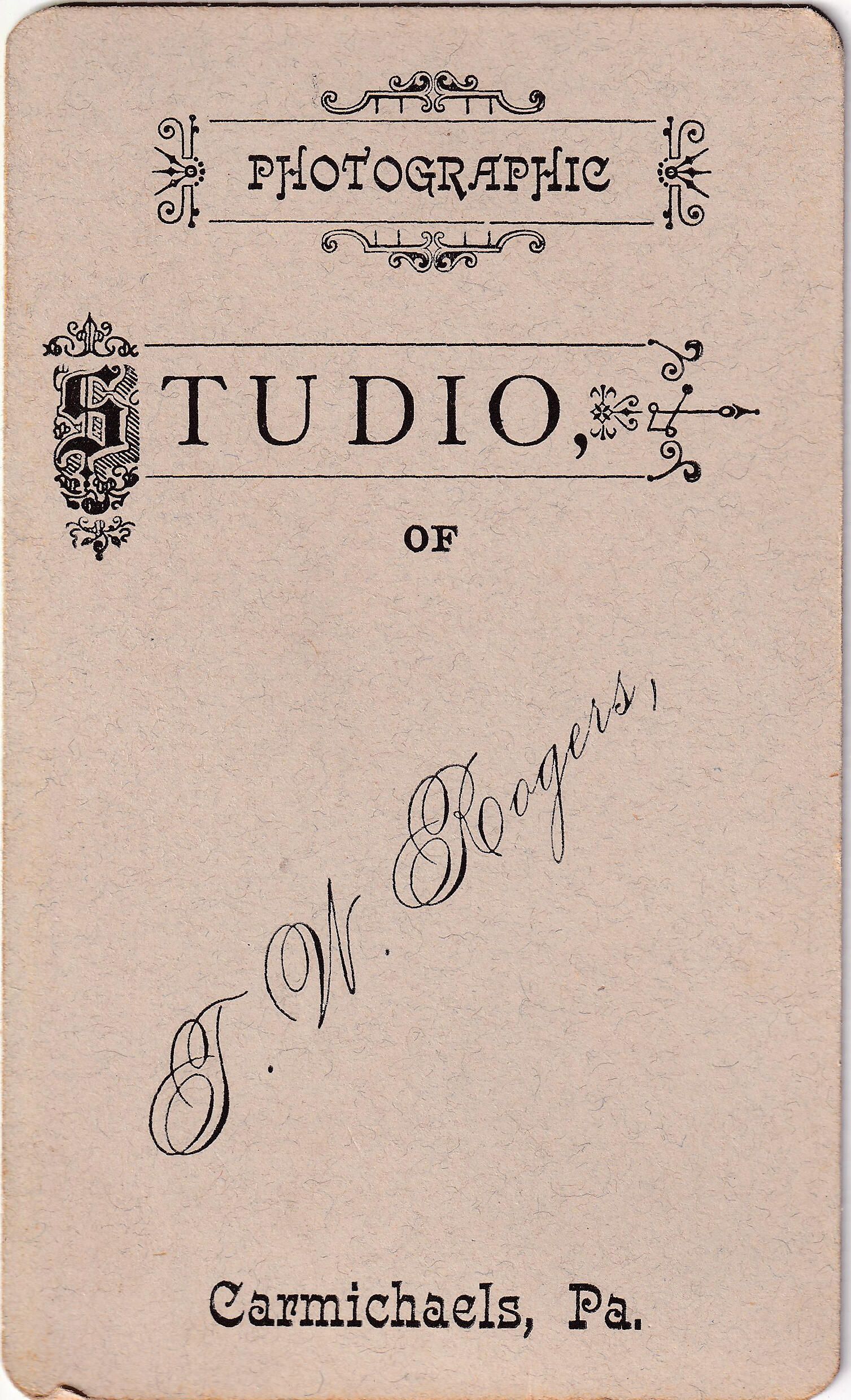 SOURCE CITATION: Ammons-Moredock Album 01, Photo 29 - Stephen Decatur Reynolds [1884-1938]; circa 1880-1890, image by Photographic Studio of T. W. Rogers, Carmichaels, Pa.; item no. MORE-AN002-0029, Ammons-Moredock Collection, Greene Connections Archives Project (www.GreeneConnections.com).