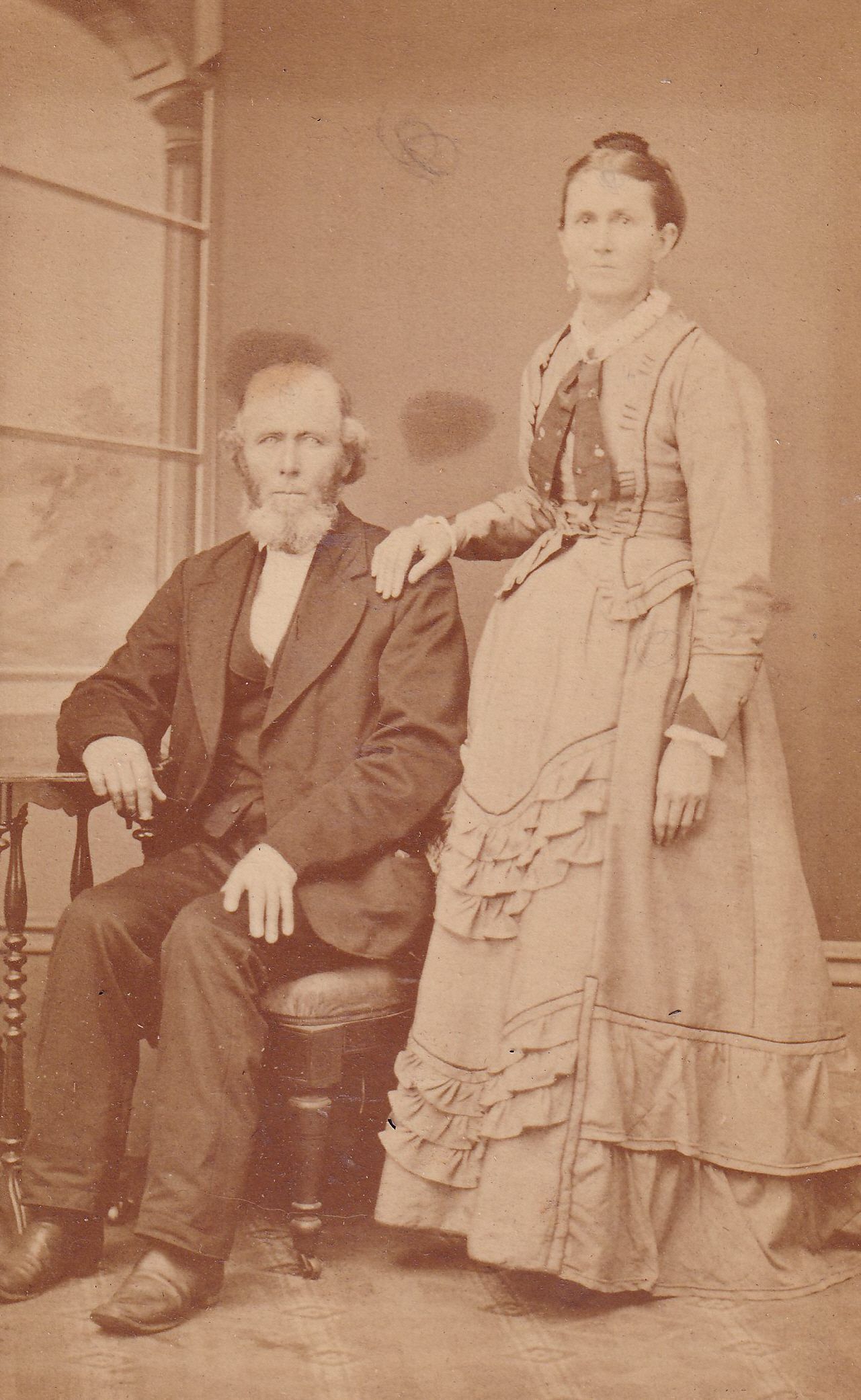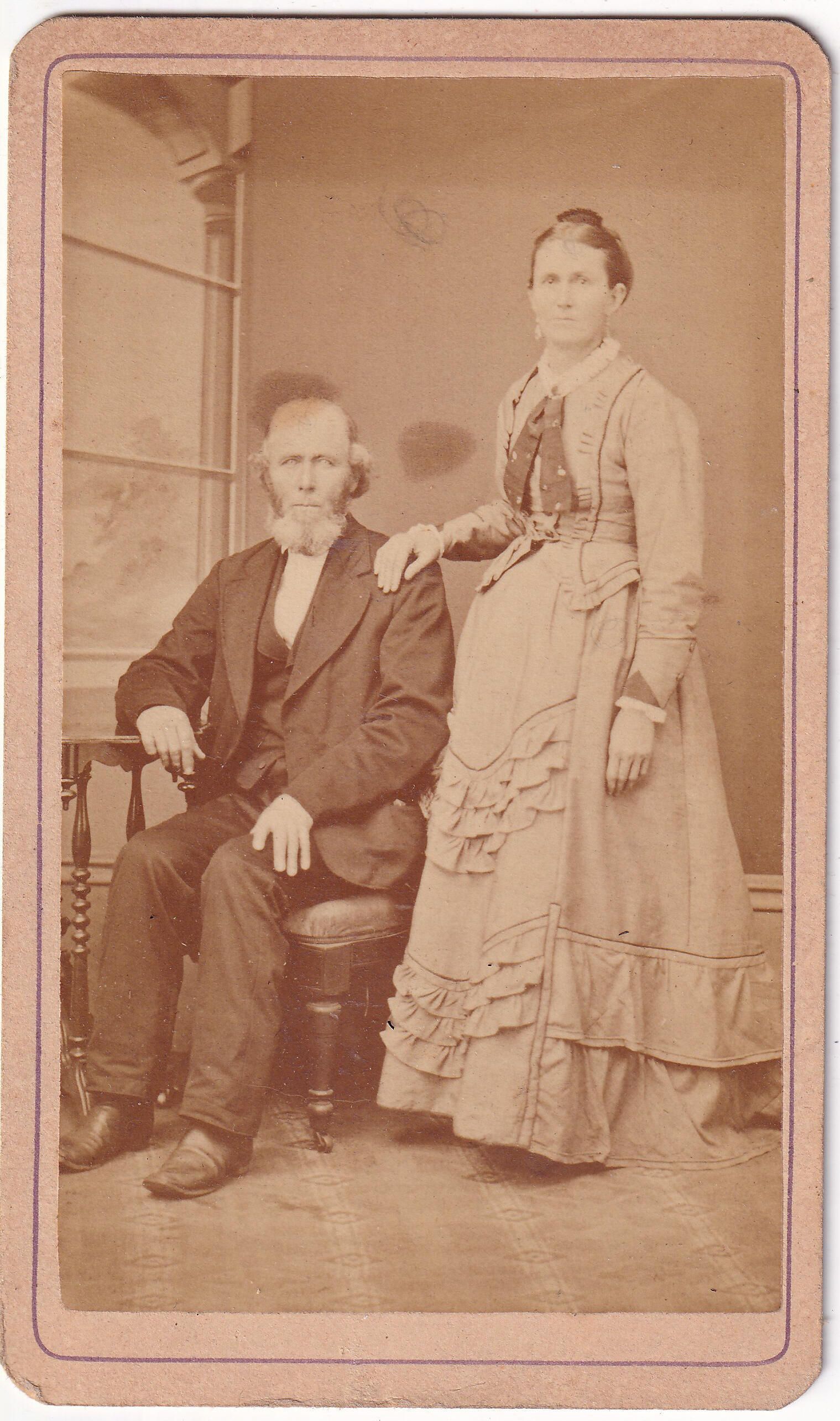 SOURCE CITATION: Ammons-Moredock Album 01, Photo 42 - William Kincaid Reynolds [1826-1915] and his wife, Margaret (Moredock) Reynolds [1829-1914]; circa 1870-1880, image by T. W. Rogers, Photographer, Carmichaels, Pa.; item no. MORE-AN002-0042, Ammons-Moredock Collection, Greene Connections Archives Project (www.GreeneConnections.com).