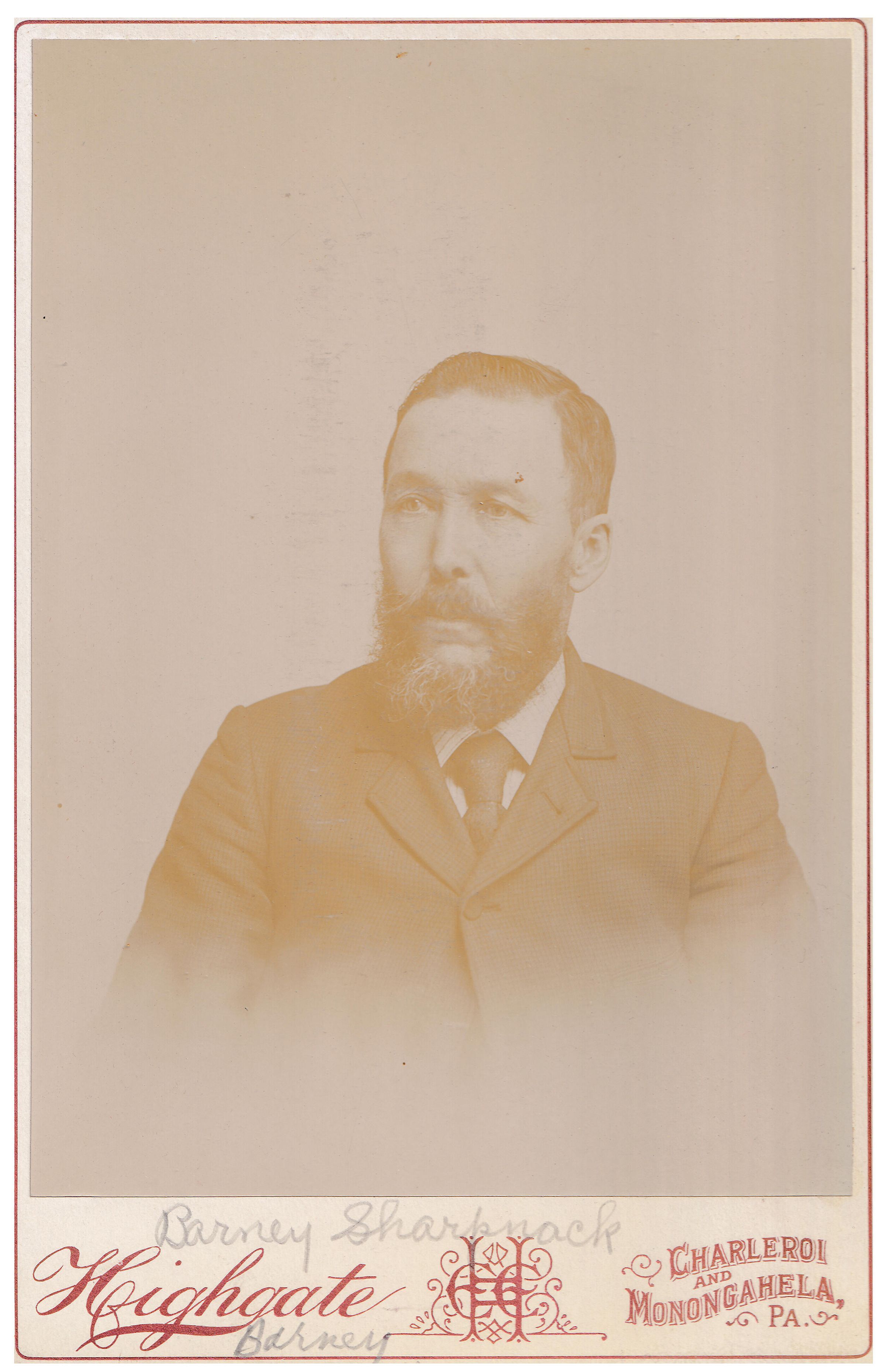 SOURCE CITATION: Ammons-Moredock Album 02, Photo 07 - Barnet Sharpnack [1841-1913]; circa 1880-1900, image by Highgate, Charleroi and Monongahela, Pa.; item no. MORE-AN003-0007, Ammons-Moredock Collection, Greene Connections Archives Project (www.GreeneConnections.com).