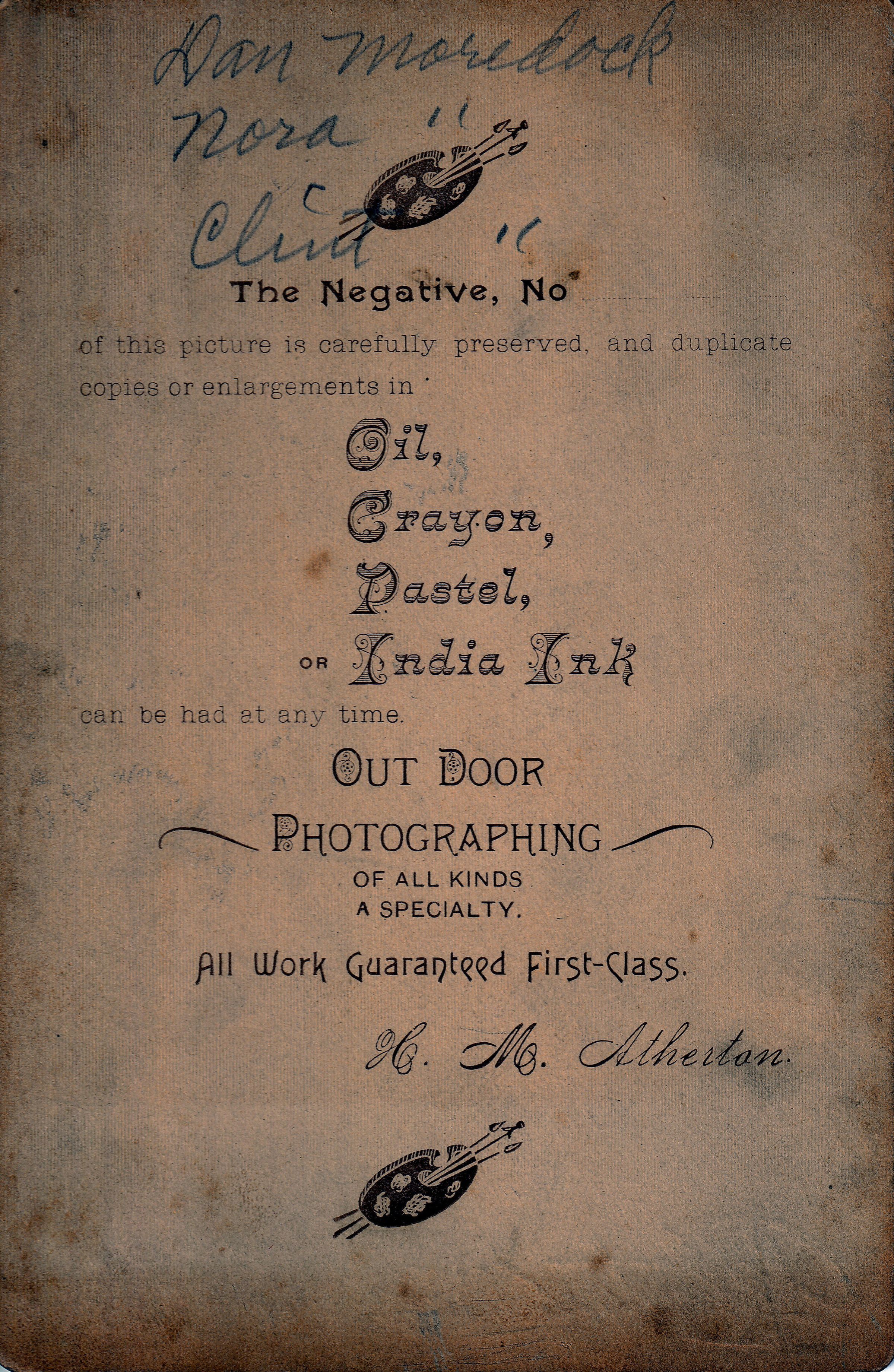 This photograph is included in a cabinet card sized photograph album that may have originally belonged to Minerva (Moredock) Ammons [1871-1966].