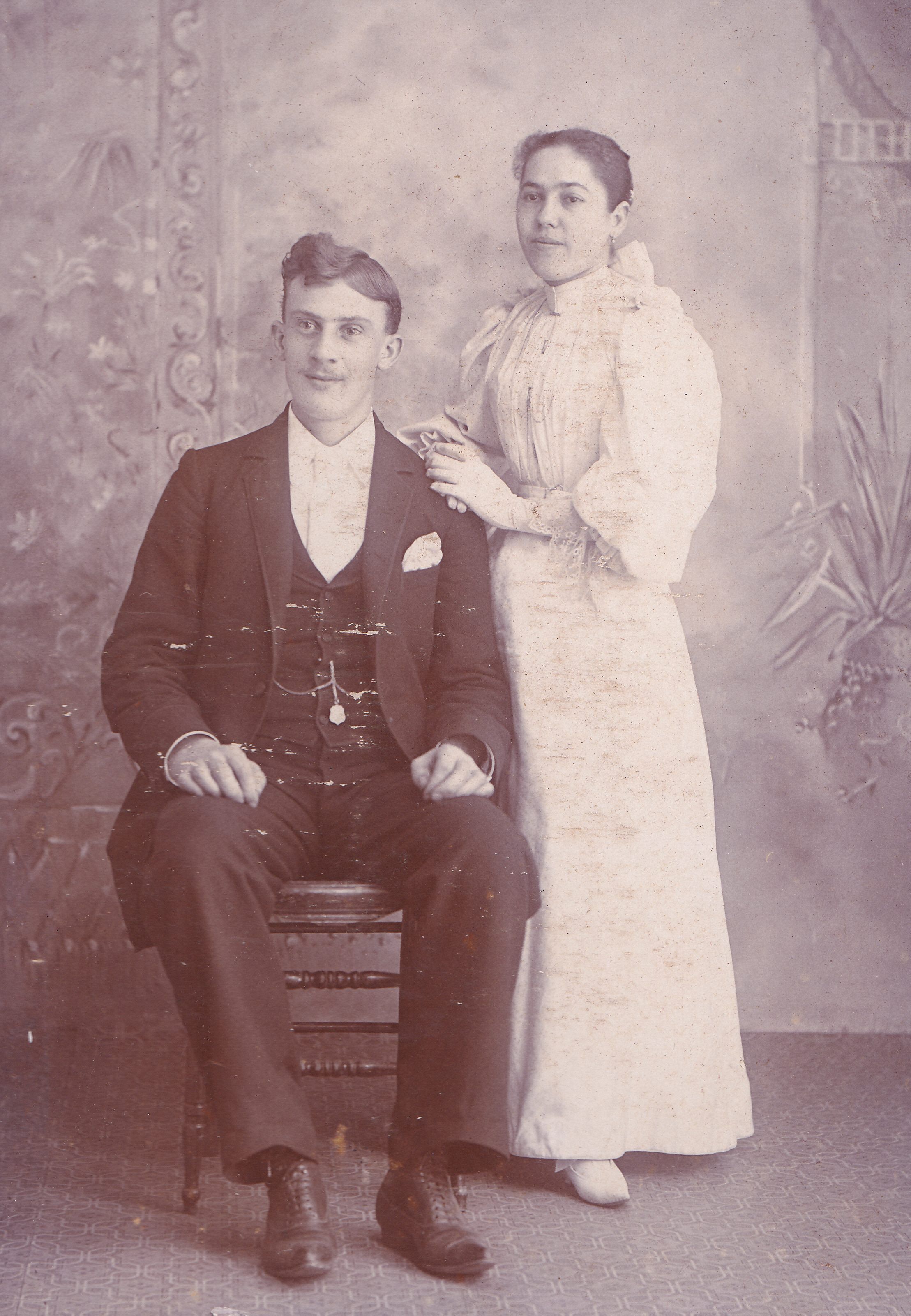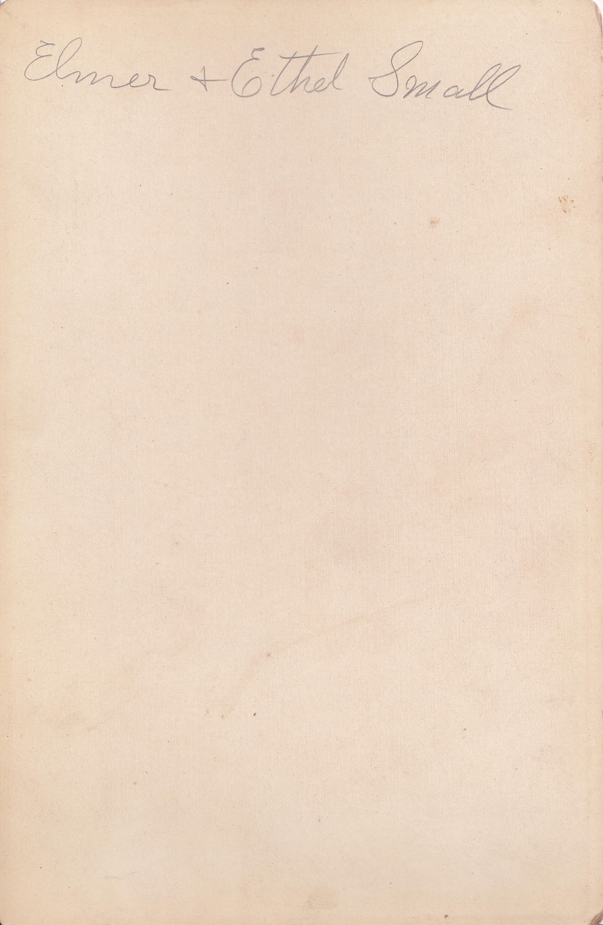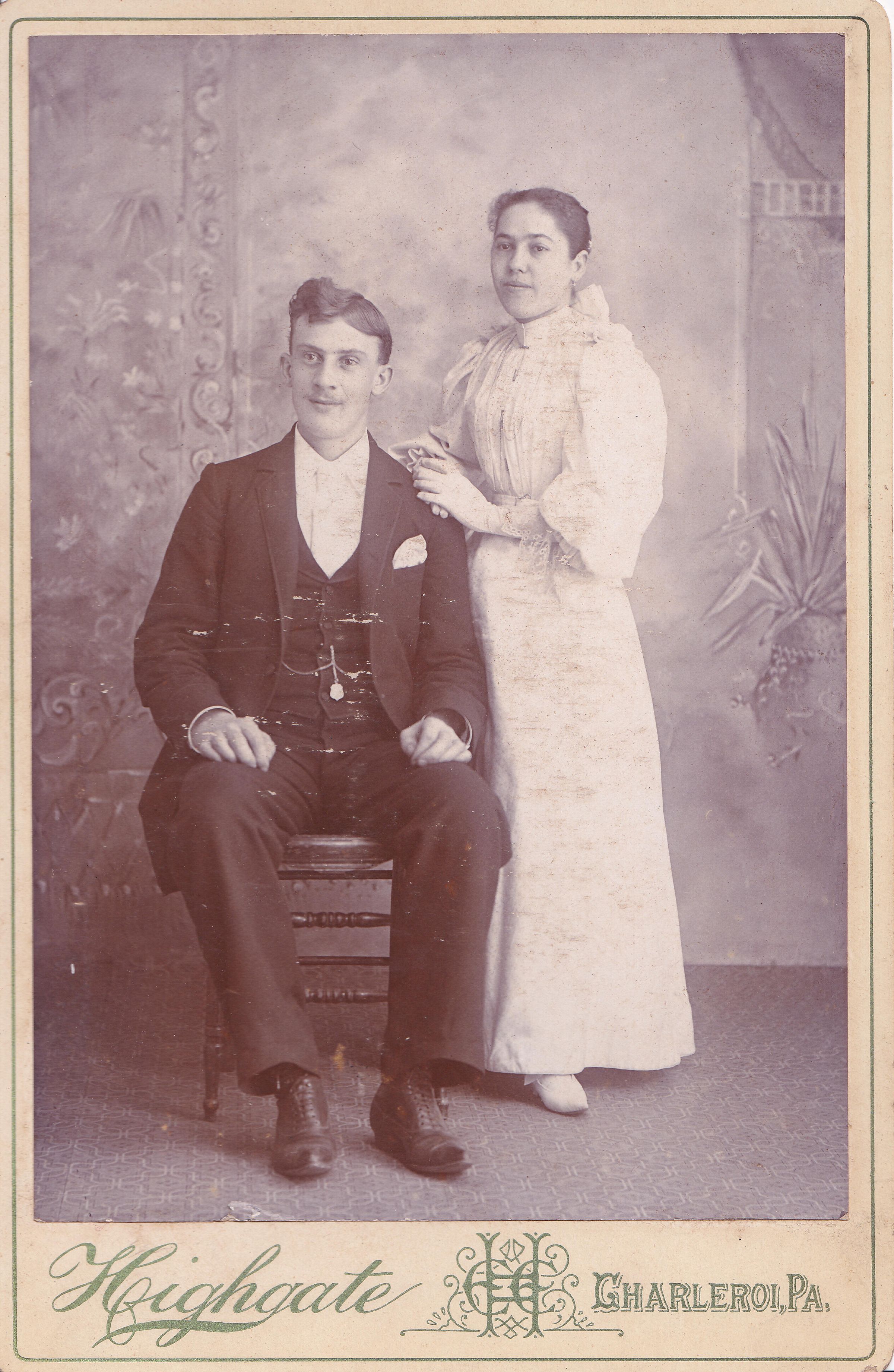 SOURCE CITATION: Ammons-Moredock Album 03, Photo 01 - Elmore Addison Small [1873-1953] and his wife, Ethel (Sharpnack) Small [1875-1960]; circa 1890-1900, image by Highgate, Charleroi, Pa.; item no. MORE-AN006-0001, Ammons-Moredock Collection, Greene Connections Archives Project (www.GreeneConnections.com).