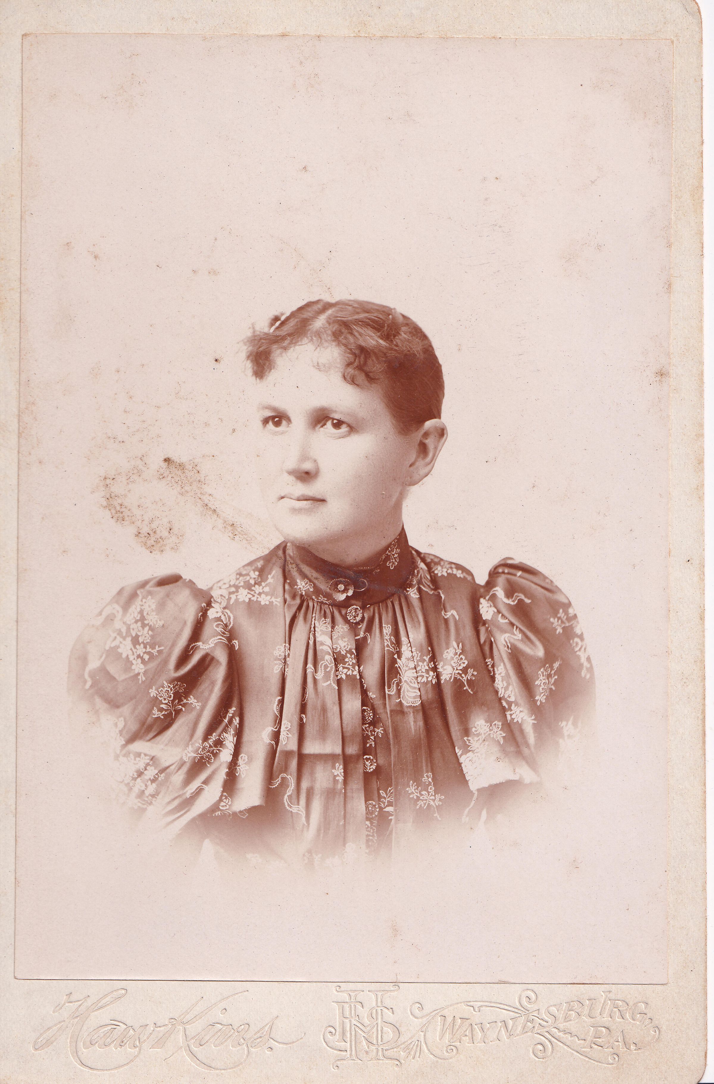 SOURCE CITATION: Ammons-Moredock Album 03, Photo 03 - Sarah (Moredock) Moredock [1860-1941]; circa 1890-1900, image by F. S. Hawkins, Waynesburg, Pa.; item no. MORE-AN006-0003, Ammons-Moredock Collection, Greene Connections Archives Project (www.GreeneConnections.com).